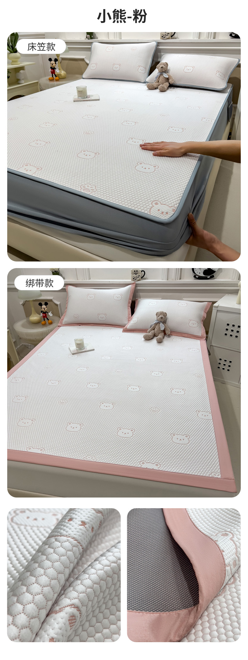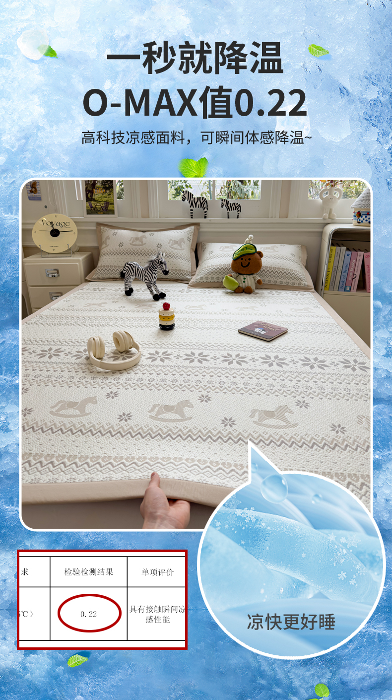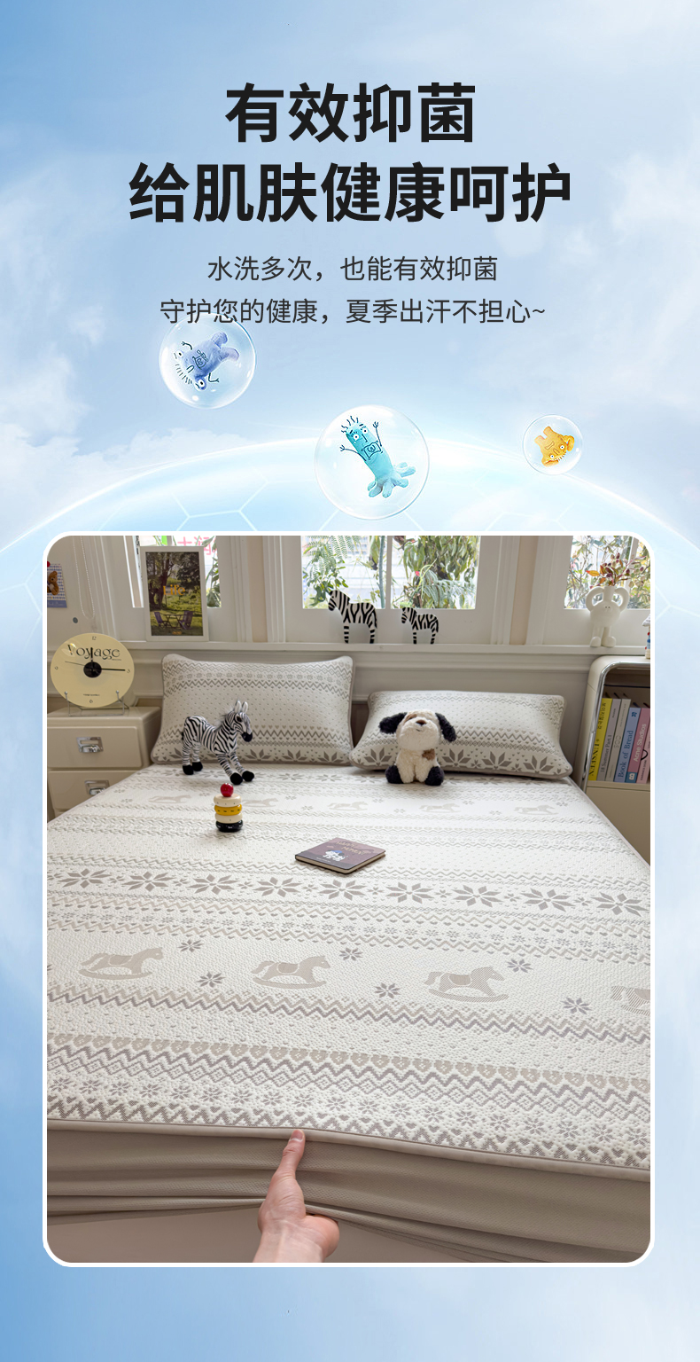 (总)席世家 2025新款A类凉感冰豆豆凉席-花卉卡通系列,呆萌熊猫,绿意,萌兔,小熊-粉,小熊-蓝,花漾
