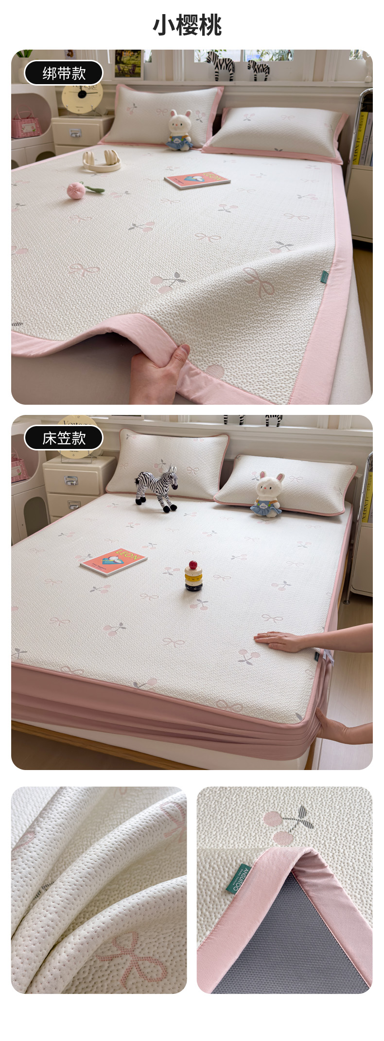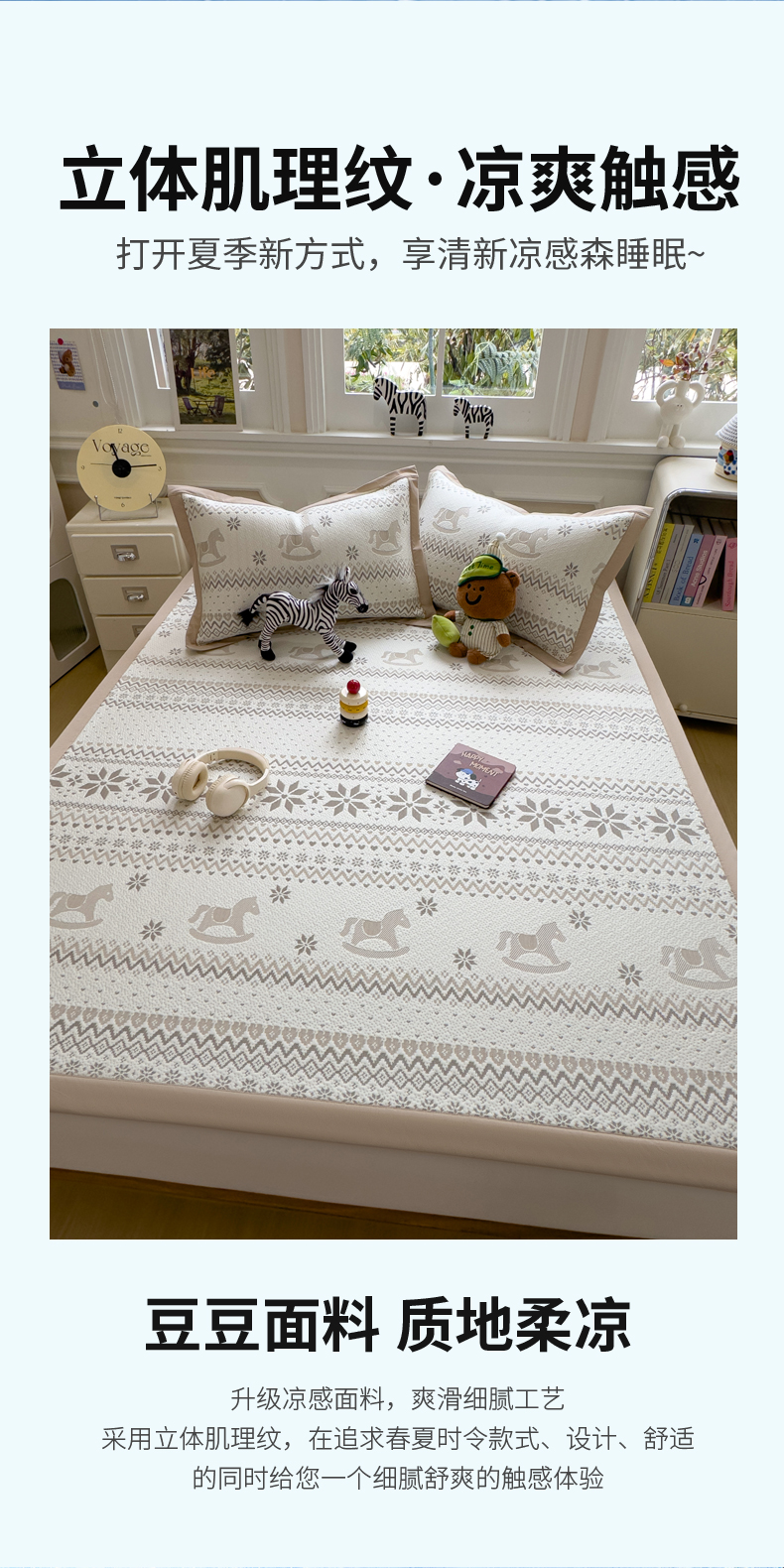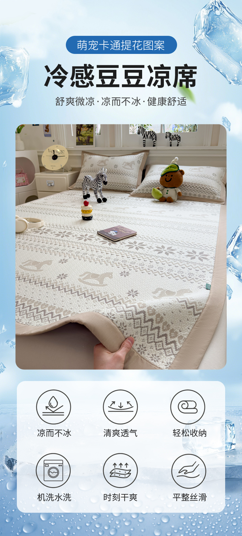 (总)席世家 2025新款A类凉感冰豆豆凉席-花卉卡通系列,呆萌熊猫,绿意,萌兔,小熊-粉,小熊-蓝,花漾
