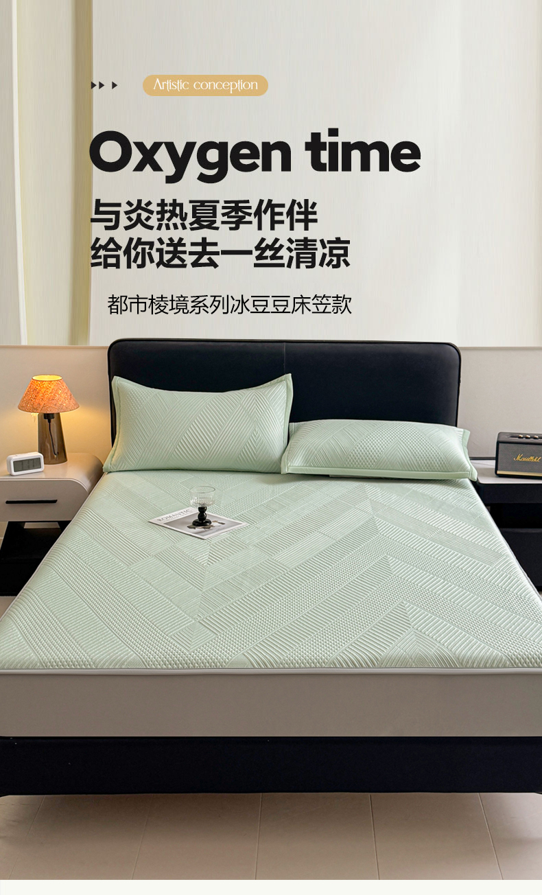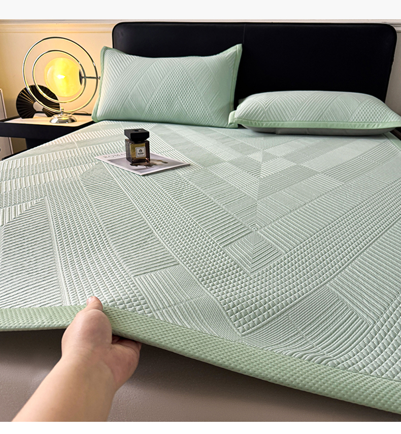 当前位置: 91家纺网 > 商品网购 > 床上用品 > 凉席 > 其他凉席 > 耐思家纺 2026新品A类高克重高端复合三明治PE乙纶提花冰豆豆凉席床笠都市棱境系列(提供买家秀) 都市棱境-绿床笠款