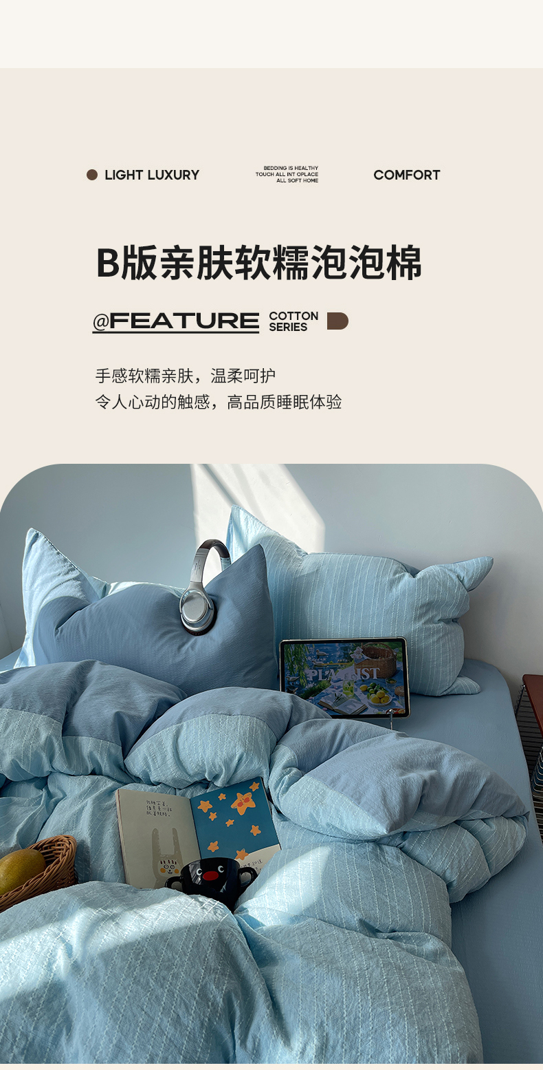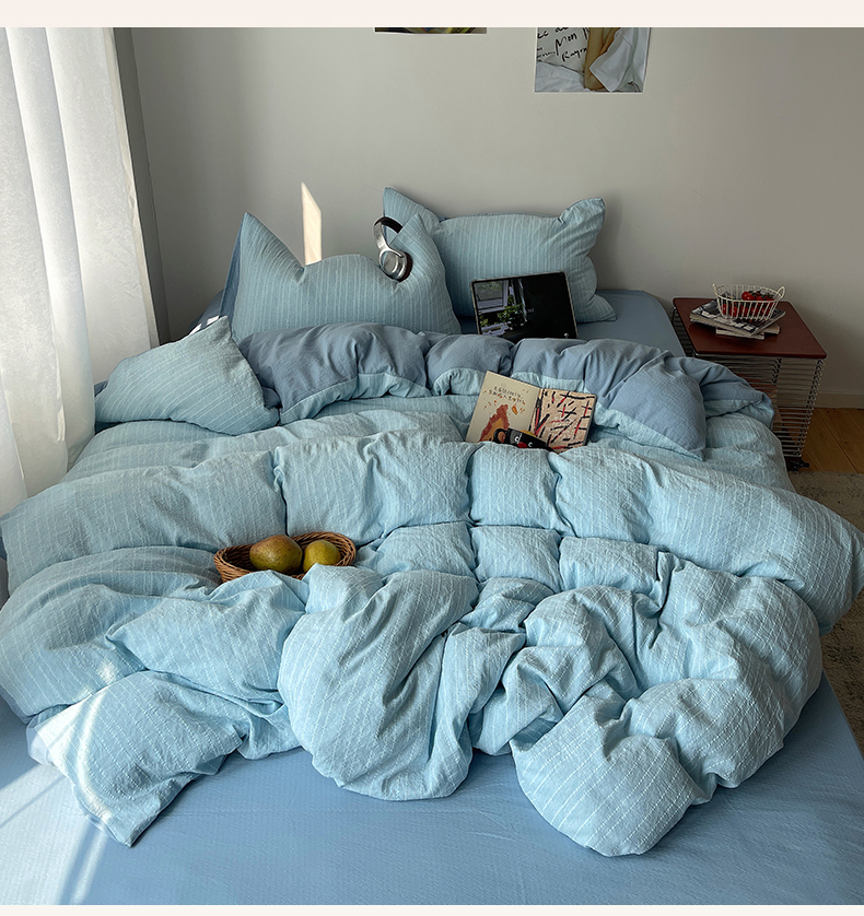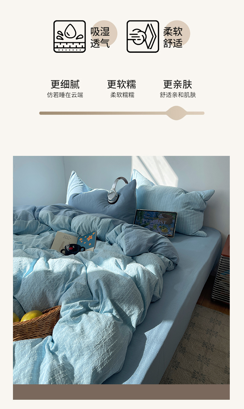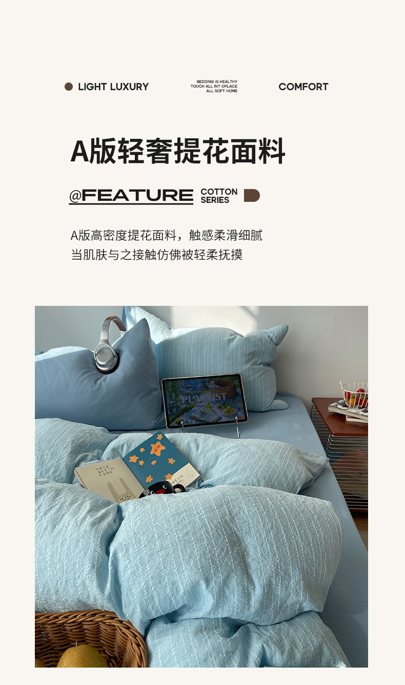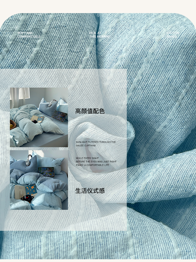 商品名称:栩裕纺织 2026新款高克重无印风阳离子提花工艺四件套 轻奢风-湖蓝