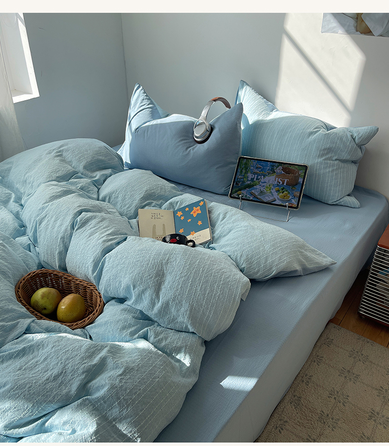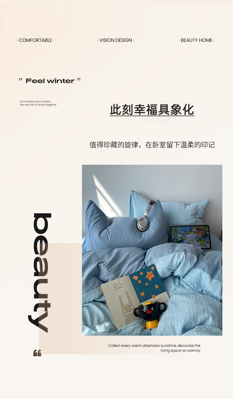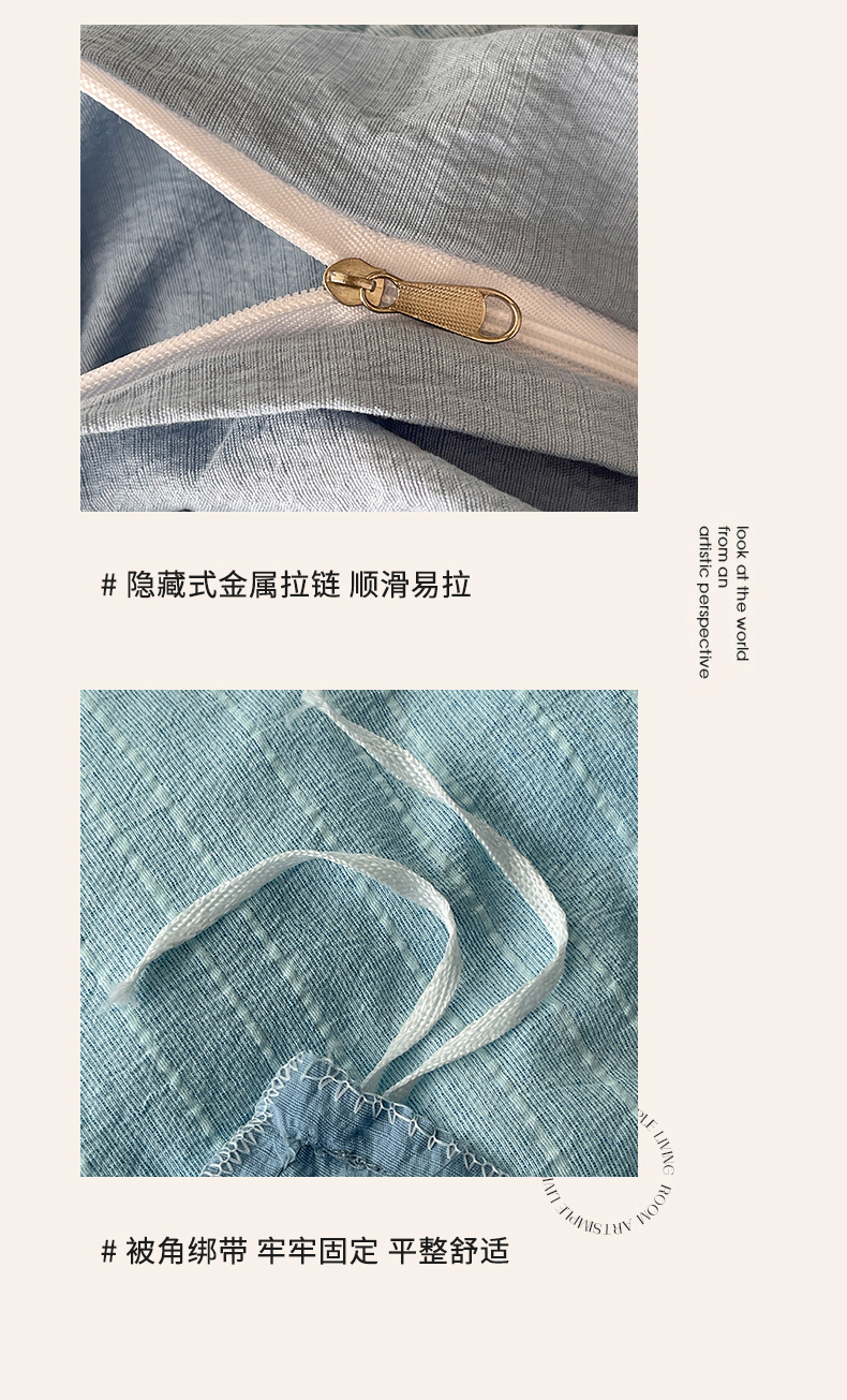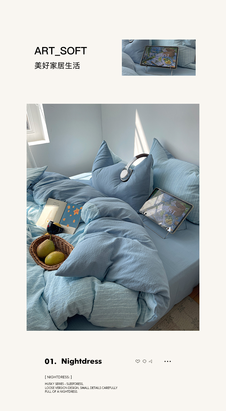 商品名称:栩裕纺织 2026新款高克重无印风阳离子提花工艺四件套 轻奢风-湖蓝