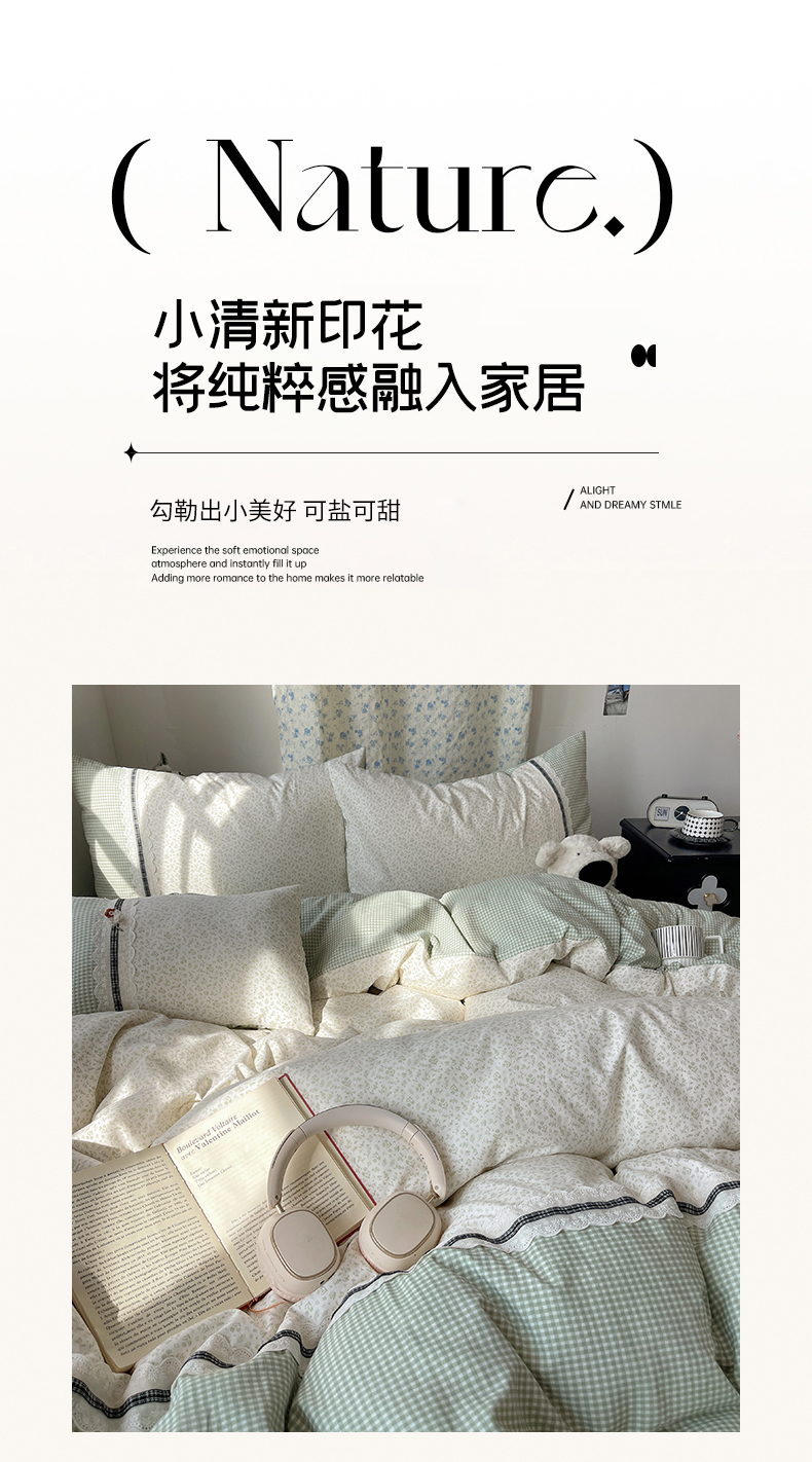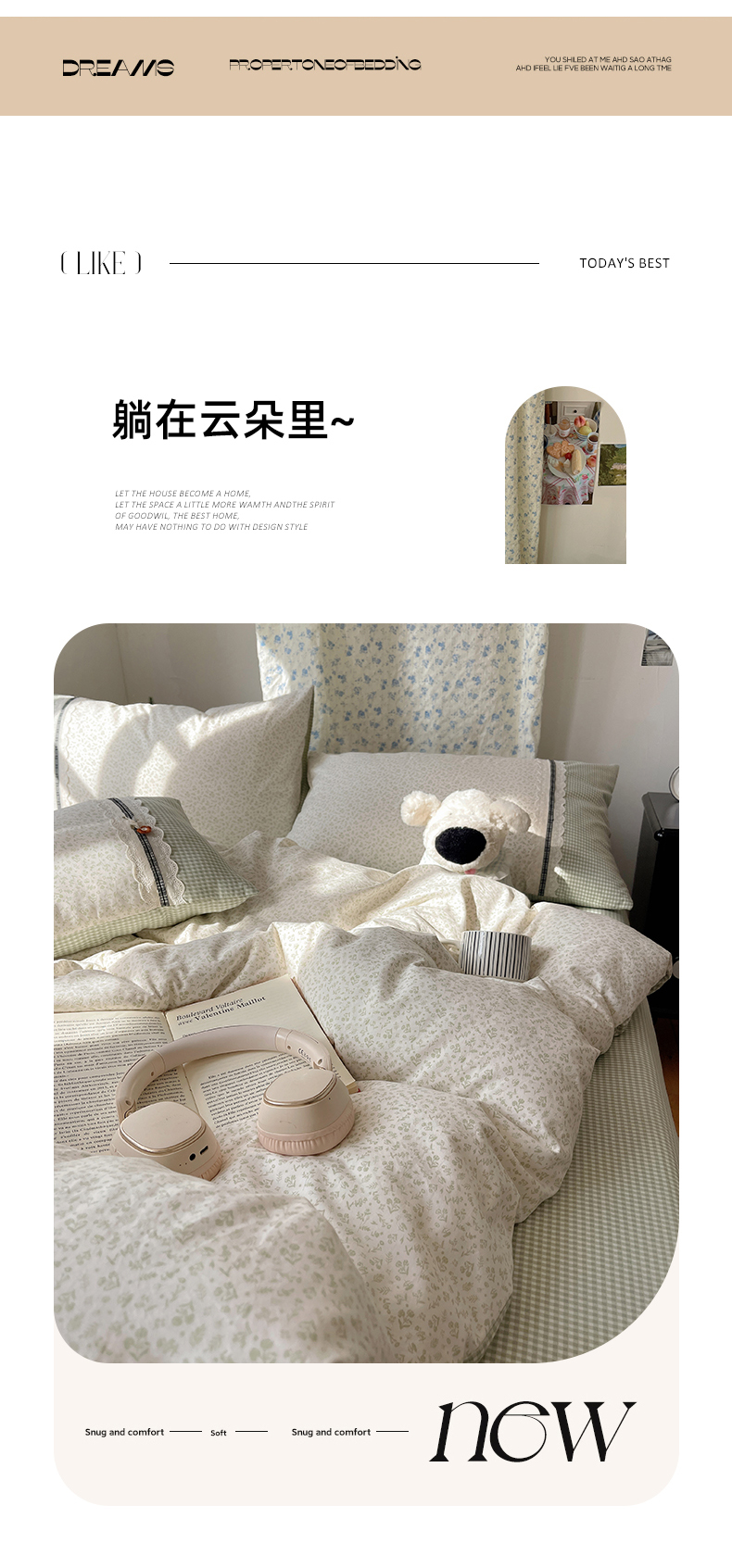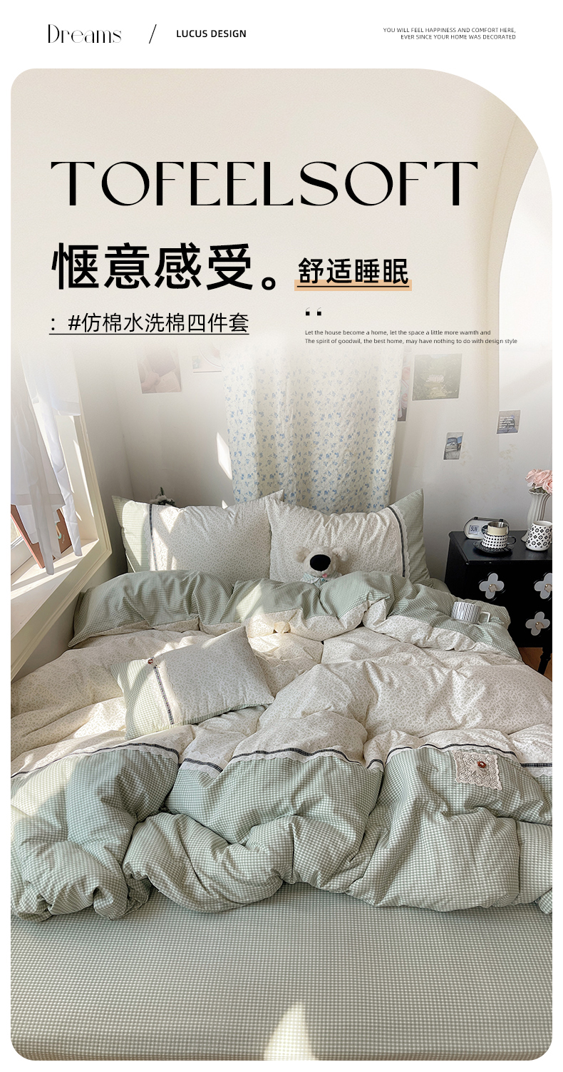栩裕纺织 2026新款仿棉水洗棉四件套 花漾格调-浅绿