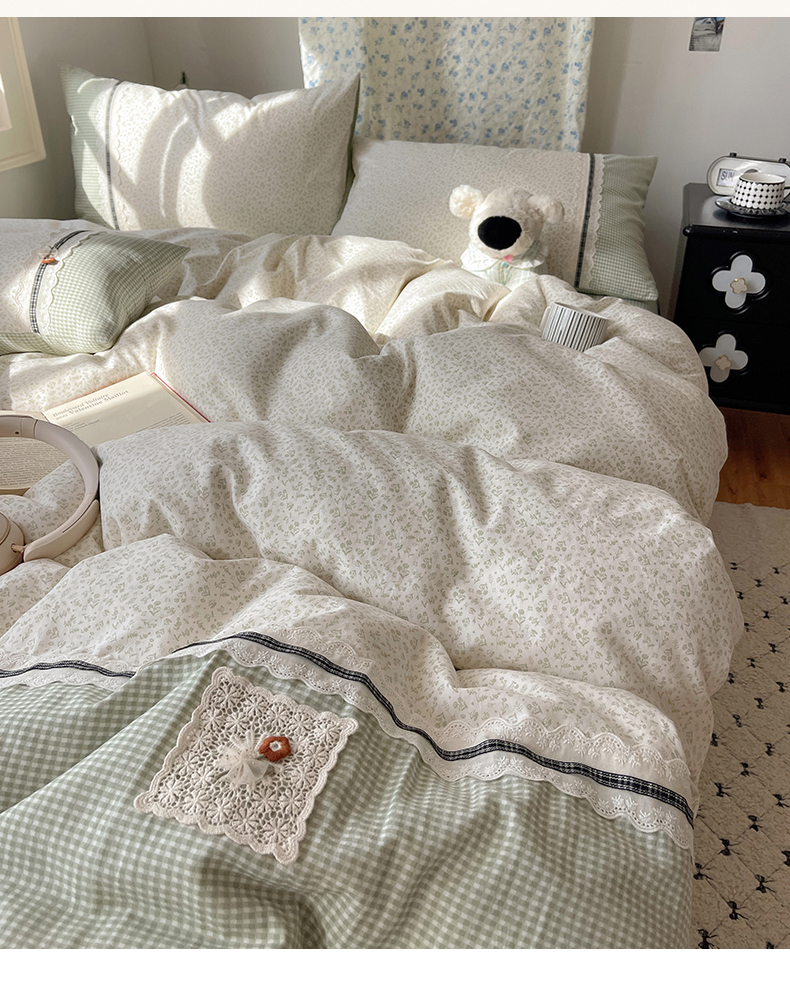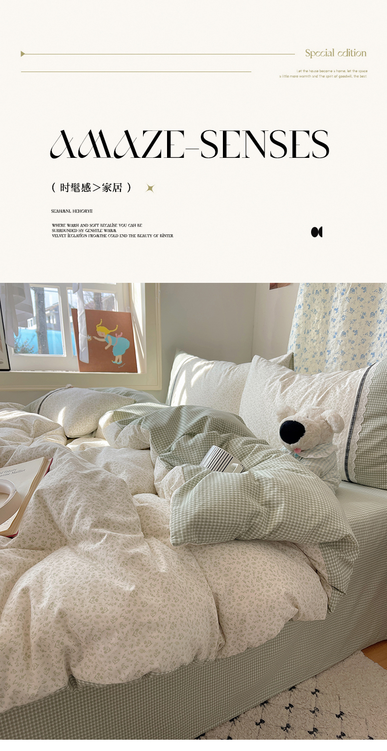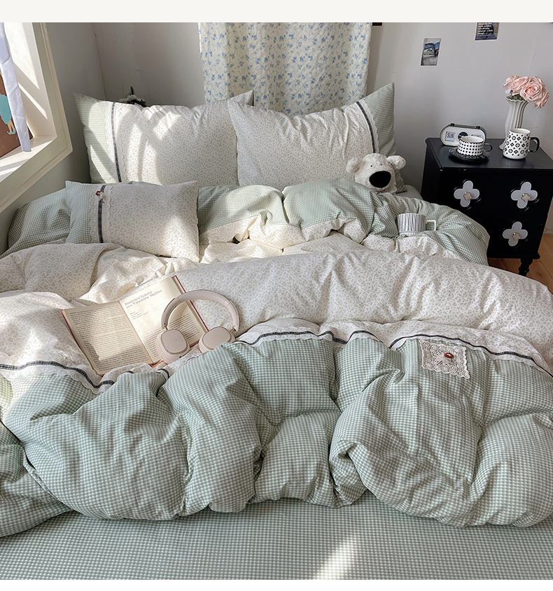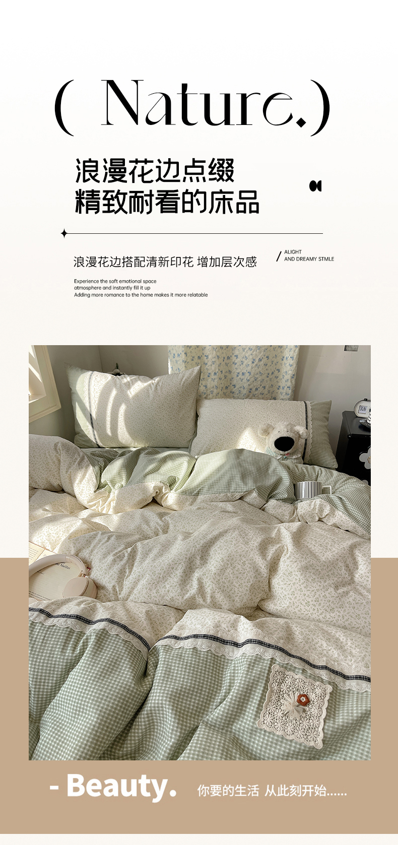 栩裕纺织 2026新款仿棉水洗棉四件套 花漾格调-浅绿