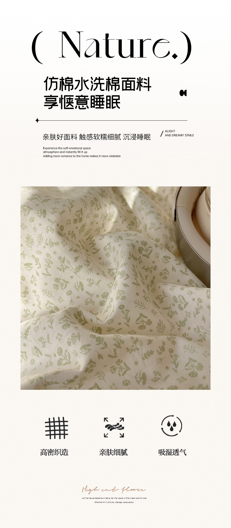 商品名称:栩裕纺织 2026新款仿棉水洗棉四件套 花漾格调-浅绿