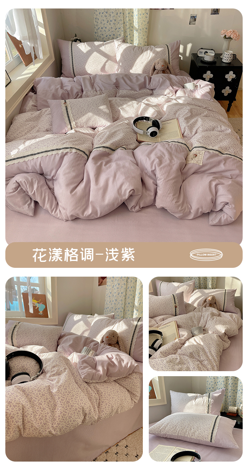 (总)栩裕纺织 2026新款仿棉水洗棉四件套,花漾格调-嫩粉,花漾格调-卡其,花漾格调-浅绿,花漾格调-浅紫,花漾格调-雾蓝