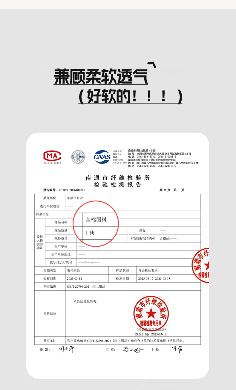 4、通州区市场监管局川姜分局友情提醒:近期针对抗静电,无静电,抗菌防螨,及有关舒适度,百分比的举报高发。为不影响商品正常销售,请各商家高度重视,自检自查及时整改,谢谢配合!