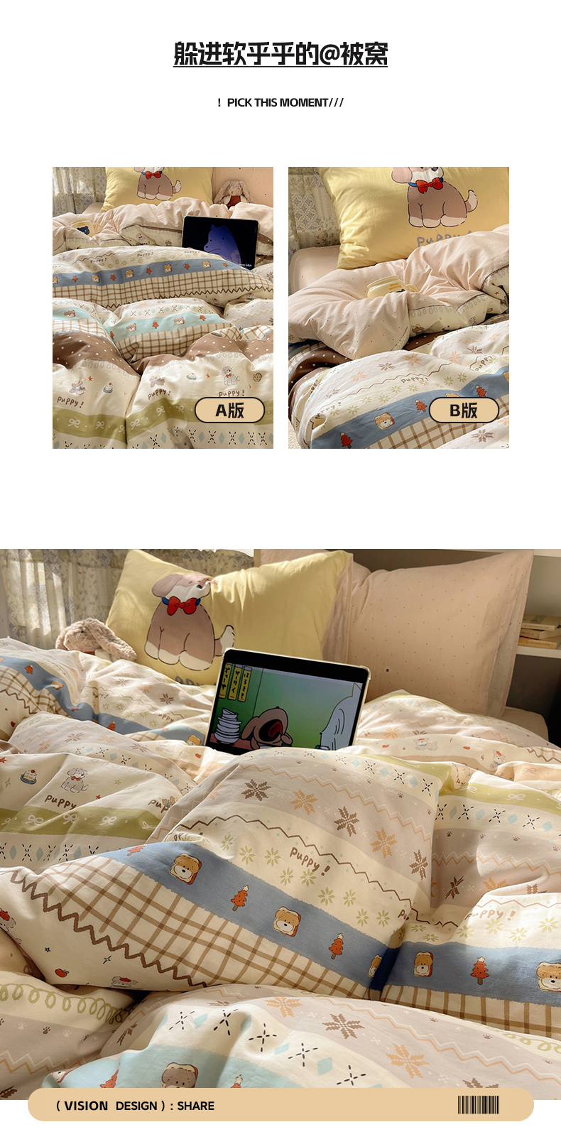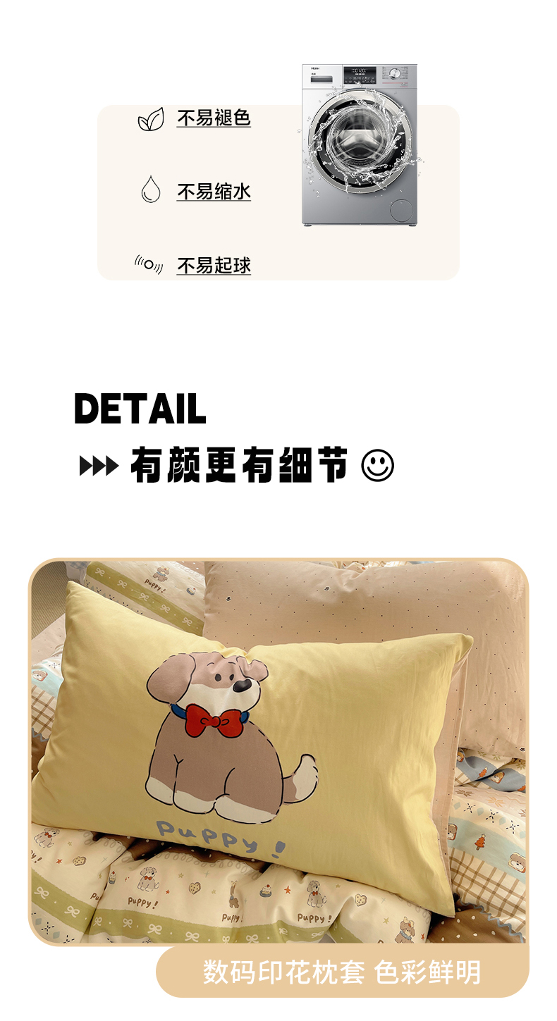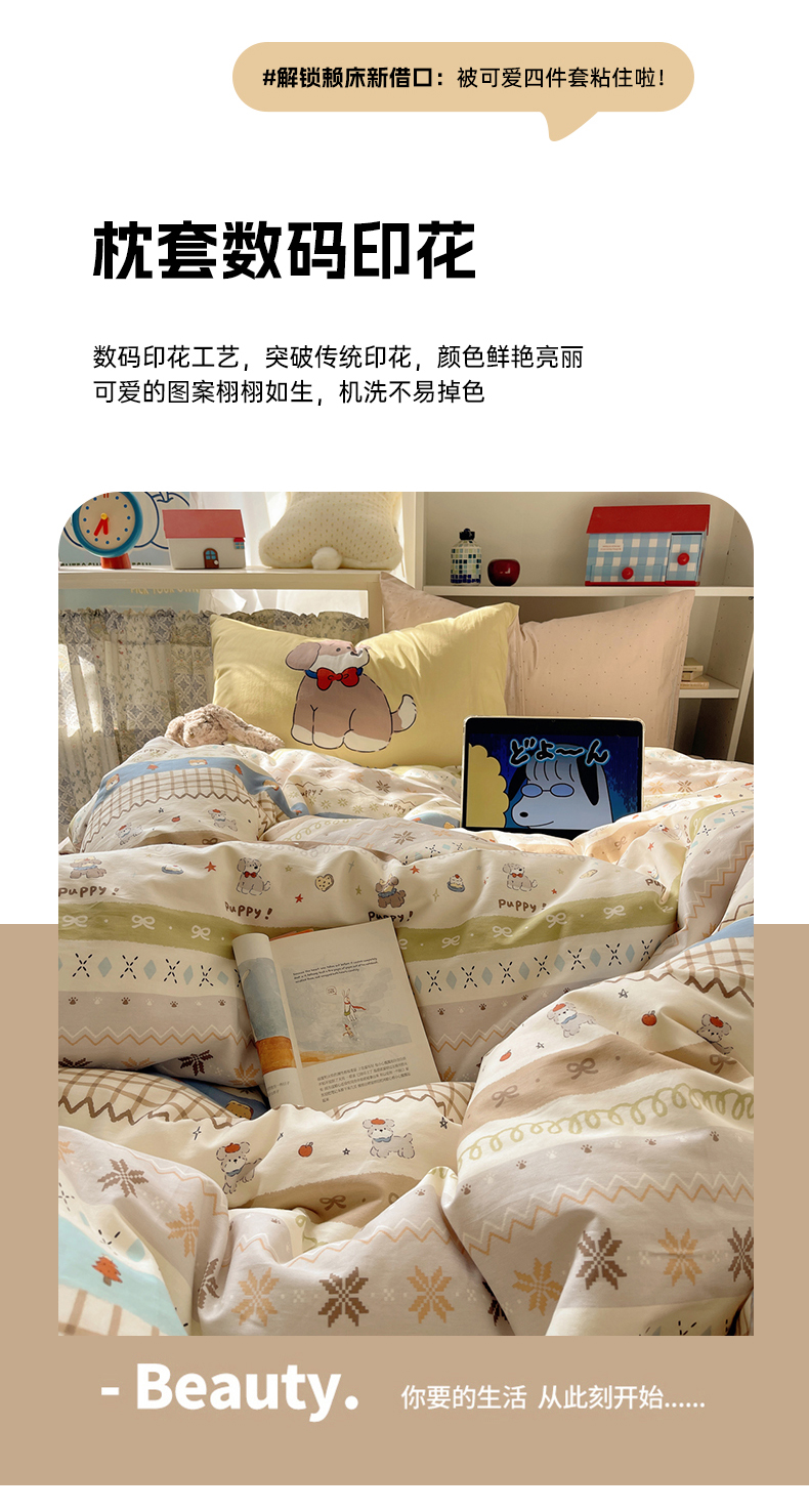 商品名称:栩裕纺织 2026新款全棉数码印花四件套 小狗仔