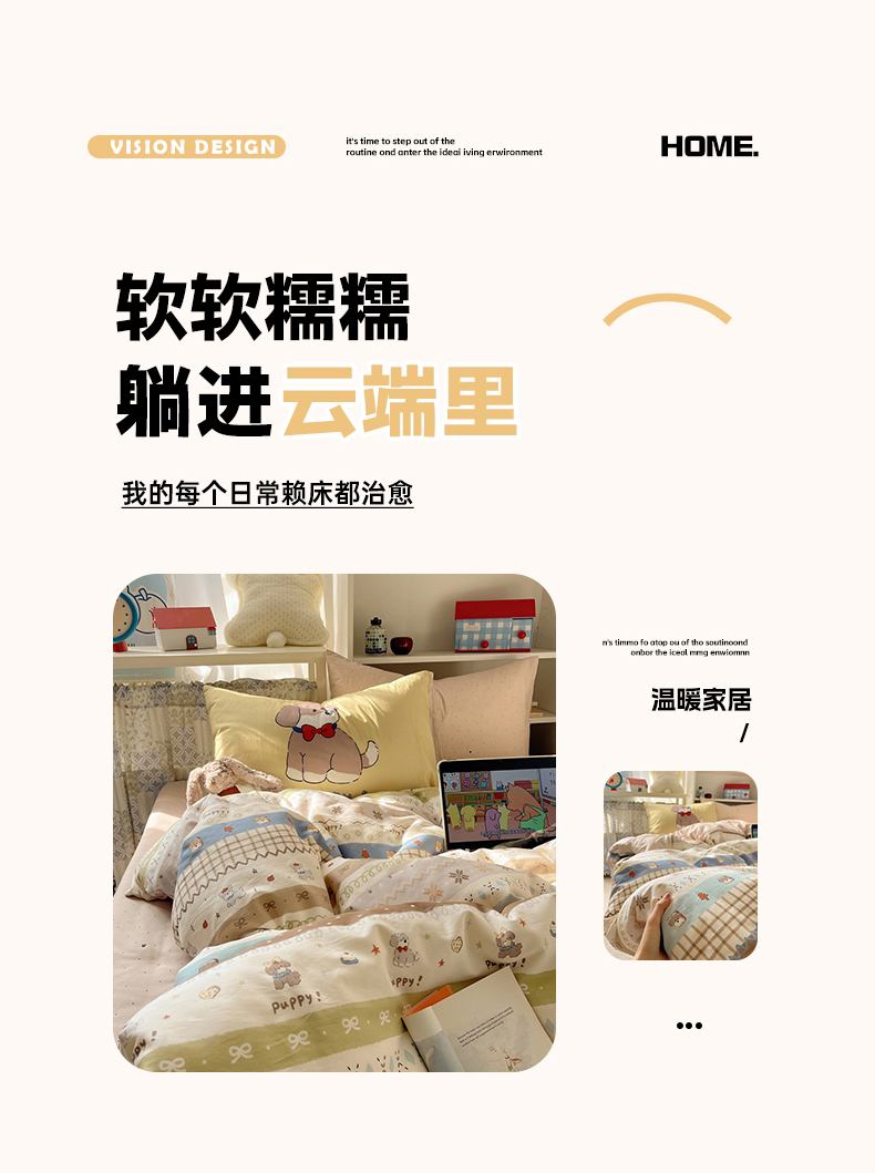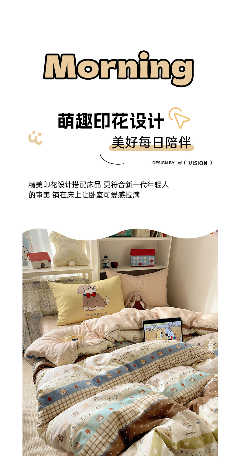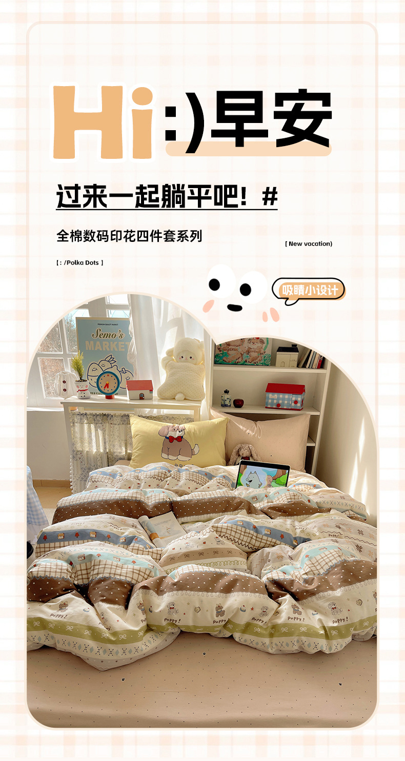 栩裕纺织 2026新款全棉数码印花四件套 小狗仔