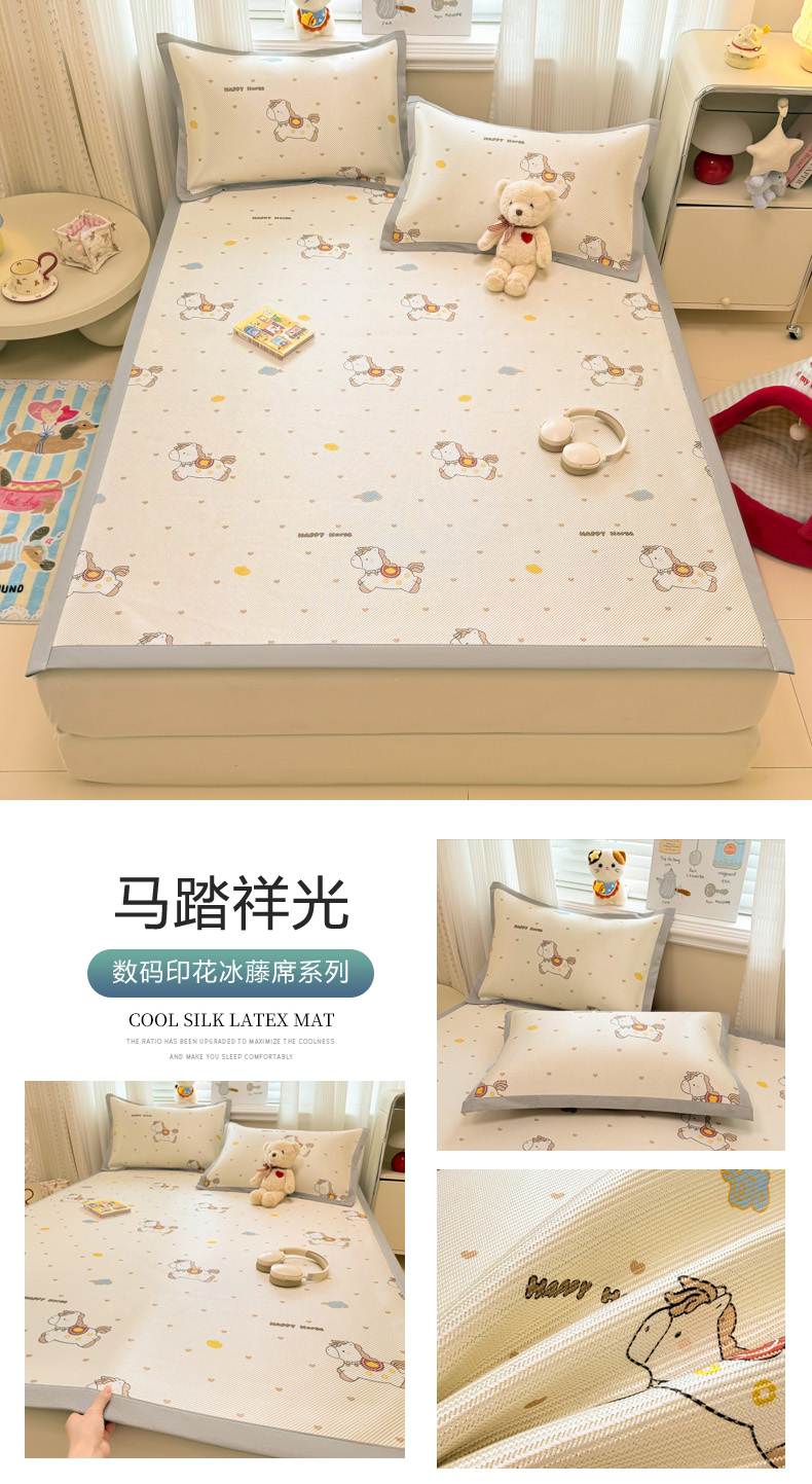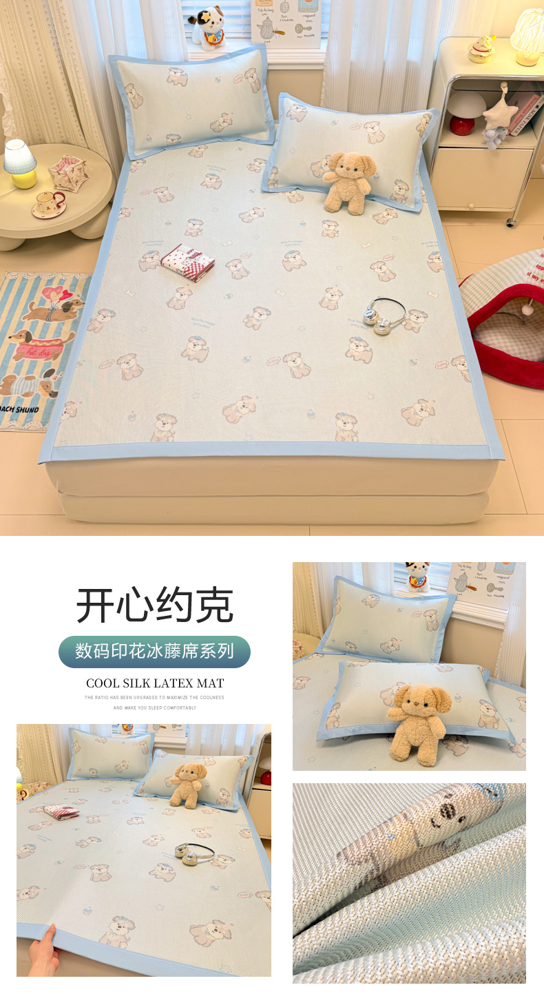 慕尚家纺 2026新款清新凉感冰藤席平铺款 活力小猫
