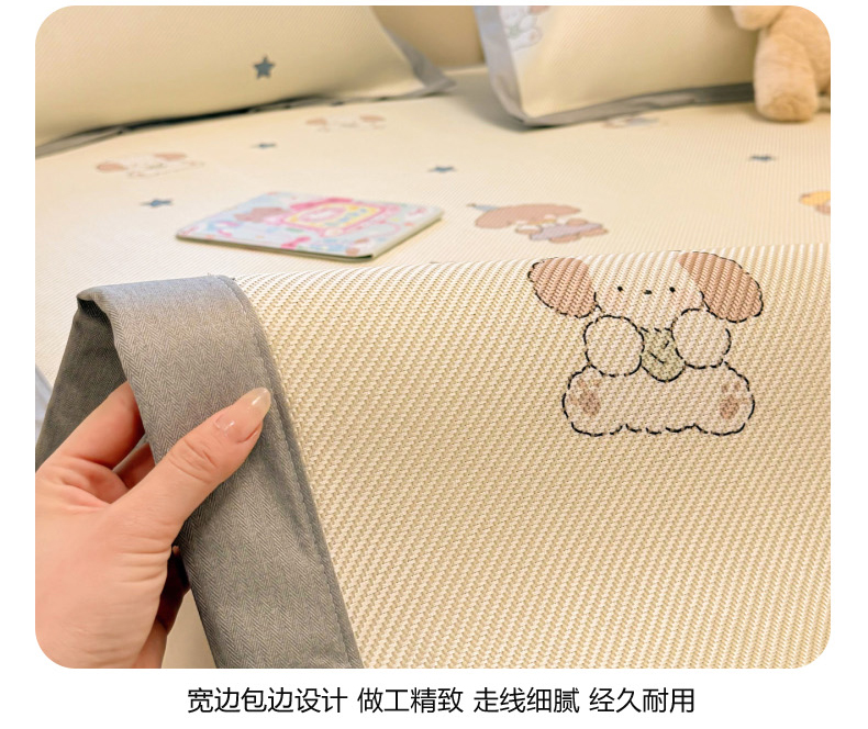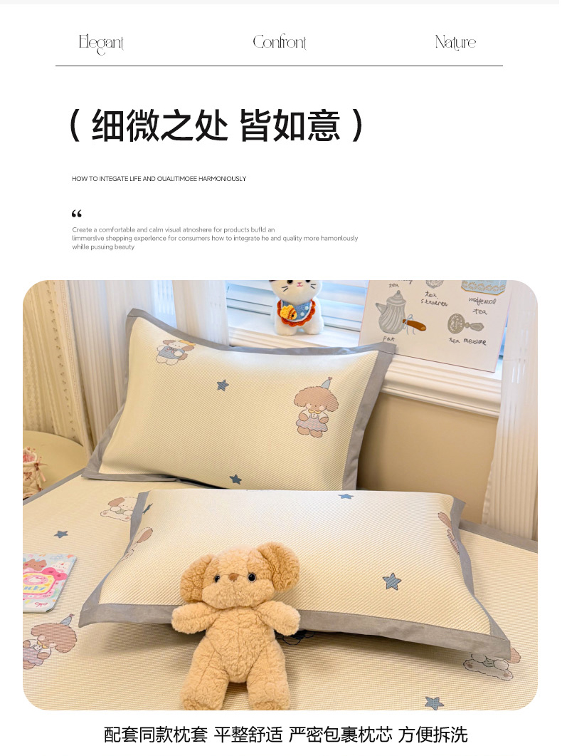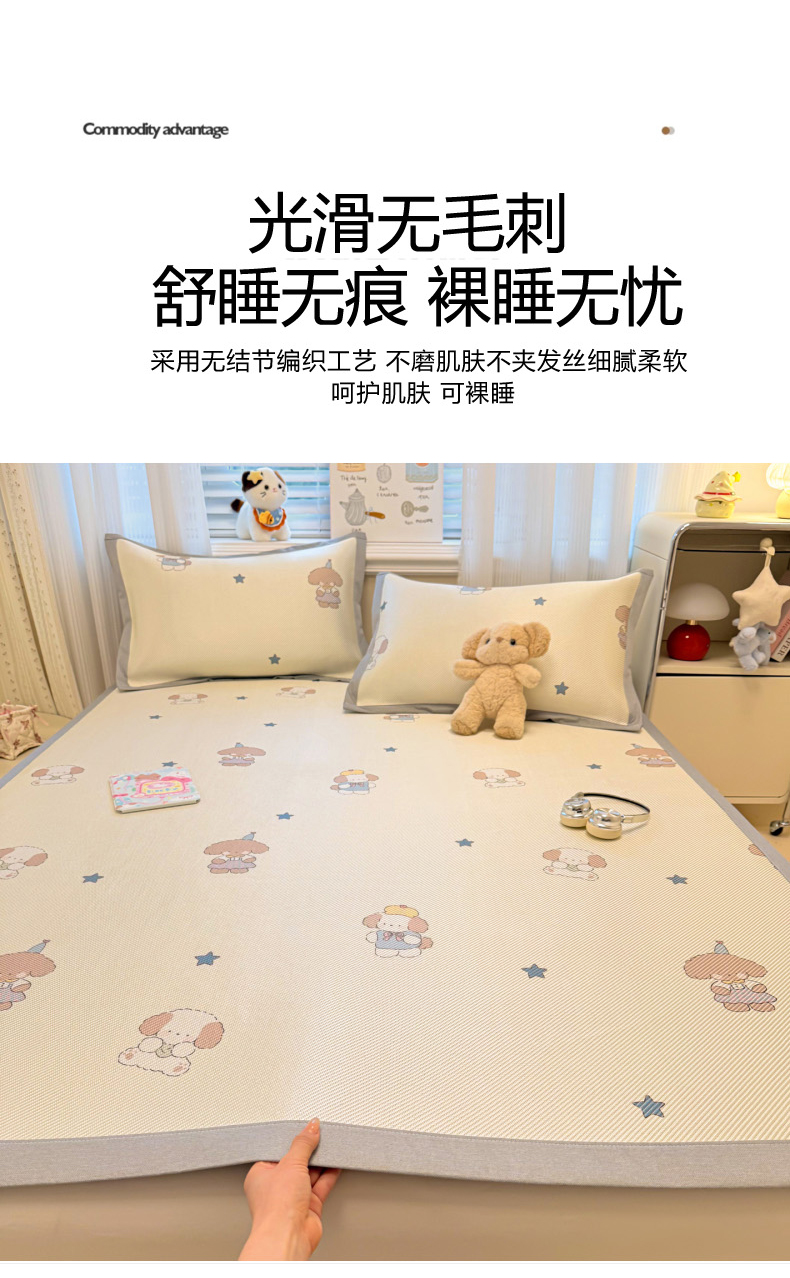 (总)慕尚家纺 2026新款清新凉感冰藤席床笠款,小福气,春日小兔,福禄小狗,蝴蝶结,活力小猫,开心约克,马踏祥光,梦幻紫花,魔法小熊,情人草,碎冰蓝,天使星仔,顽皮兔,小猫耶,小毛球,星星宝宝,星星熊,紫气东来