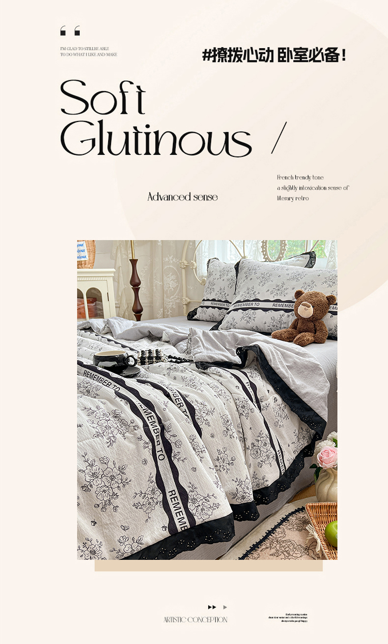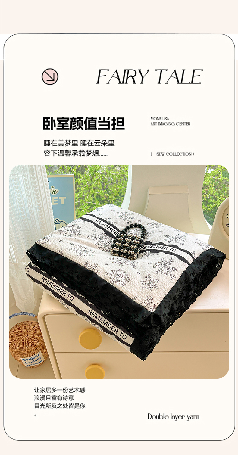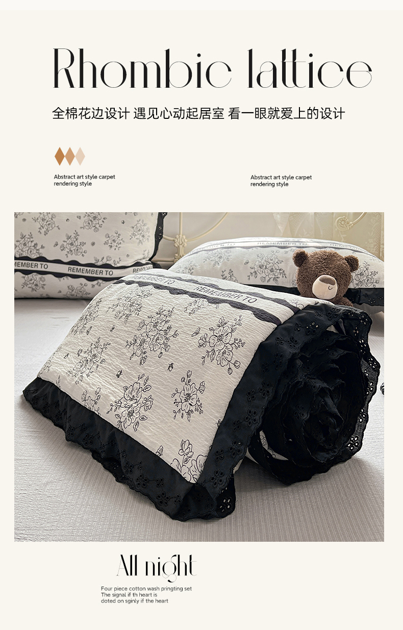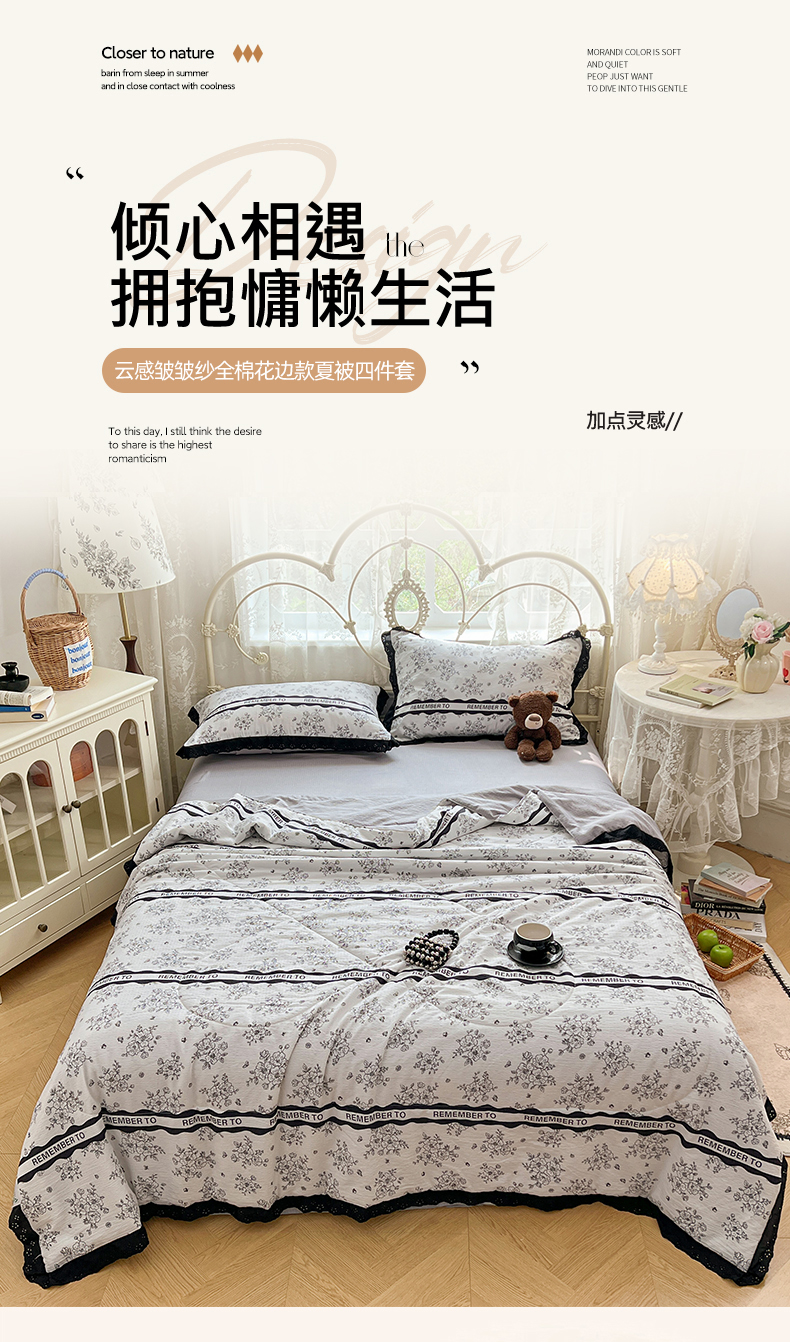商品名称:优尚佳生活馆 2026新款云感皱皱纱全棉花边款夏被四件套 清墨