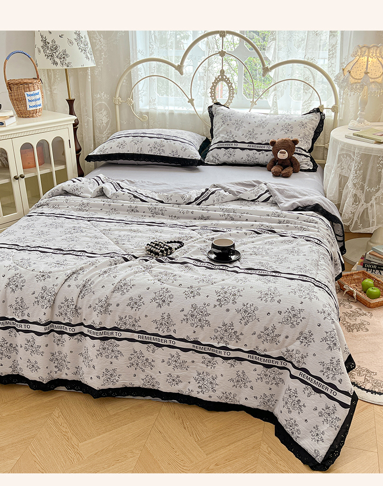优尚佳生活馆 2026新款云感皱皱纱全棉花边款夏被四件套 清墨
