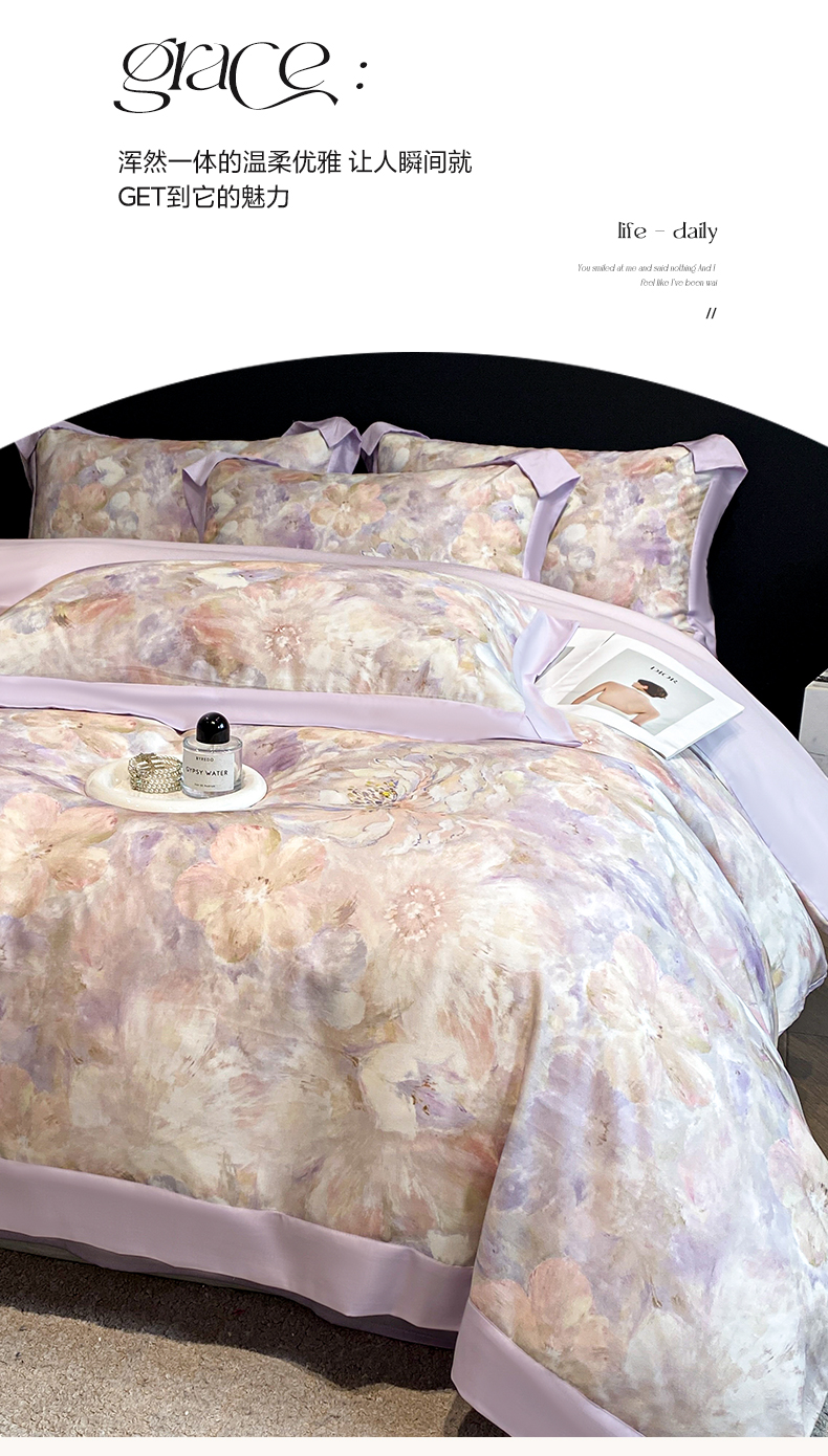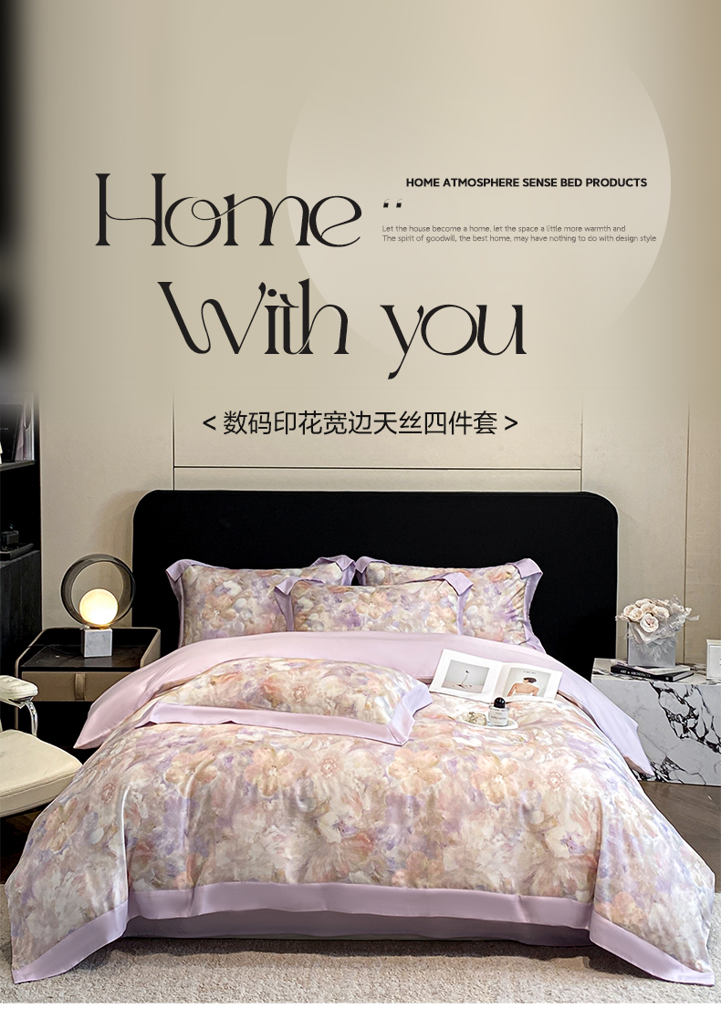 当前位置: 91家纺网 > 商品网购 > 床品套件 > 四件套 > 莱赛尔四件套 > 博纳家纺 2026新款数码印花天丝宽边四件套 卡罗拉