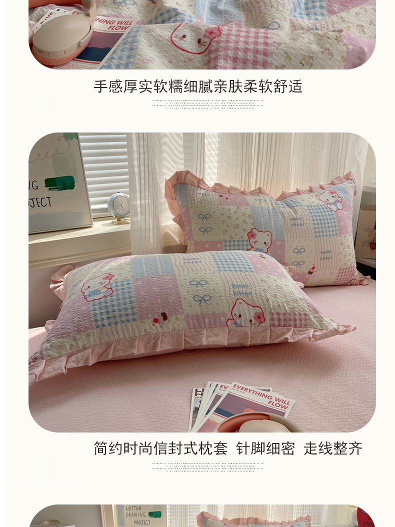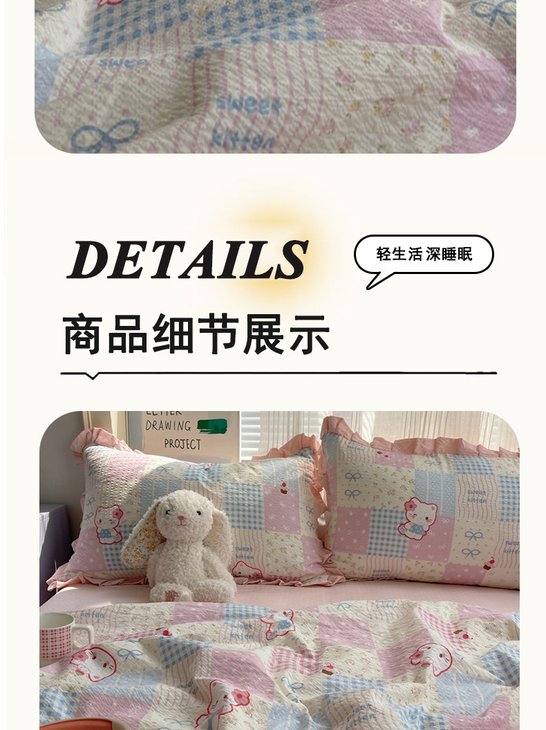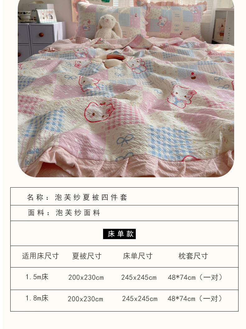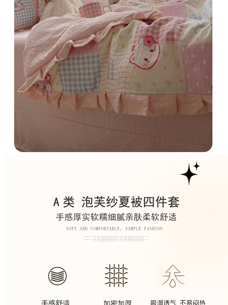 商品名称:迪梦姿家纺 2026新款泡芙纱花边款夏被四件套 甜喵块块