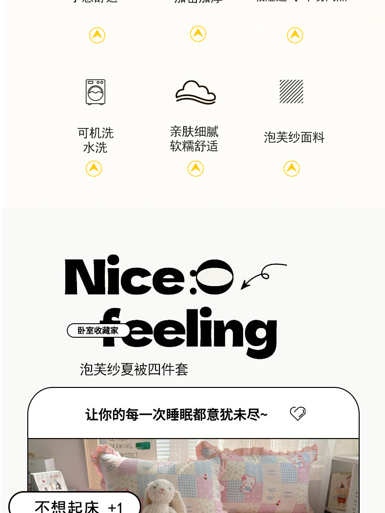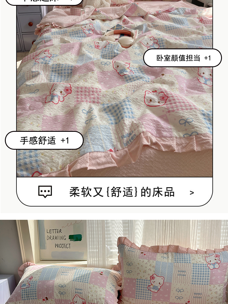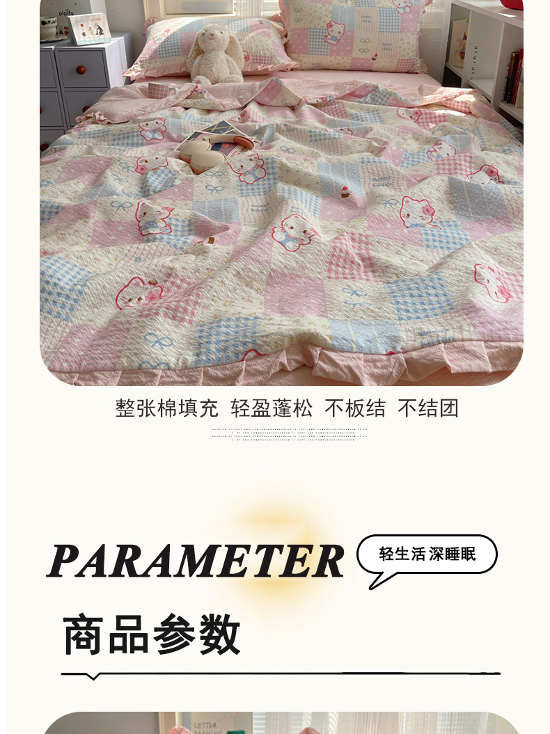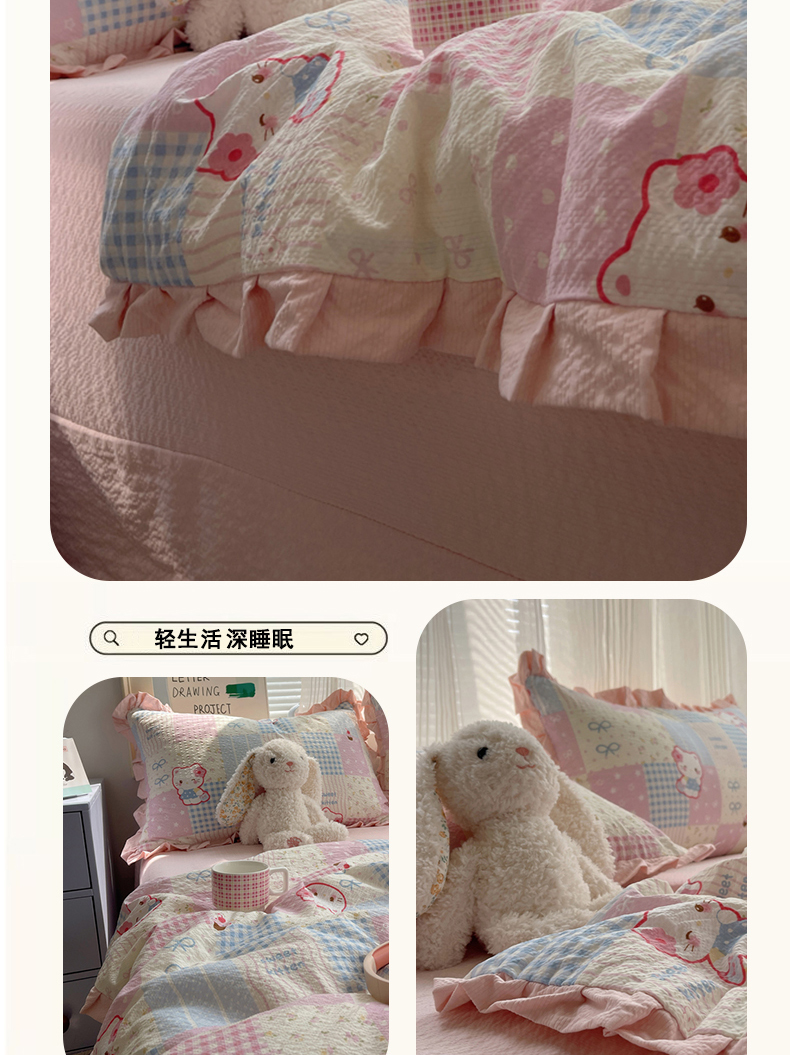 商品名称:迪梦姿家纺 2026新款泡芙纱花边款夏被四件套 甜喵块块