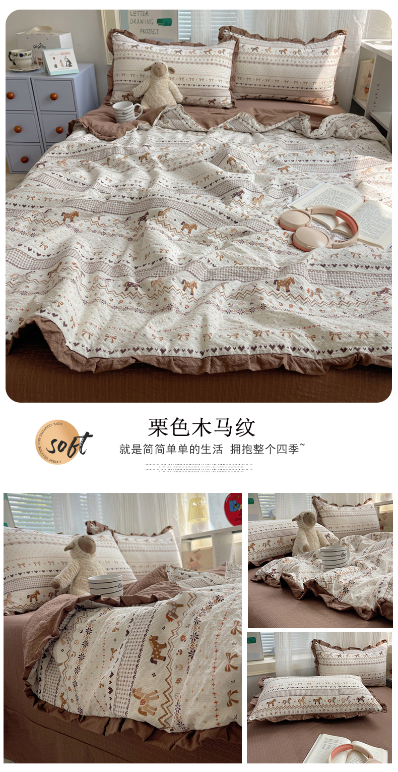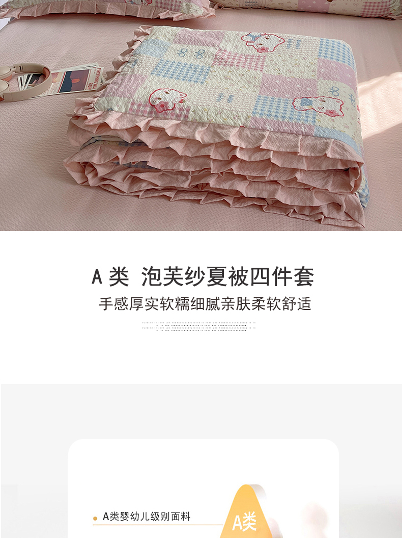 (总)迪梦姿家纺 2026新款泡芙纱花边款夏被四件套,纯宅熊,躲猫猫,旧街星星,可可小猫条,栗色木马纹,满堂红樱花粉,萌物条条,浅夏花信,田园兔,甜喵块块,甜心咖絮,甜心木马卷,兔仔花田,小兔裙边,悦悦小兔,只闻花香,紫雾花蝶集