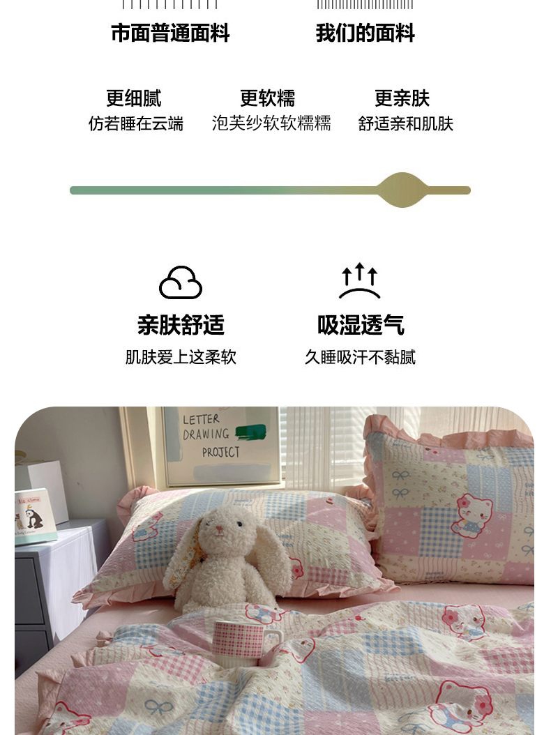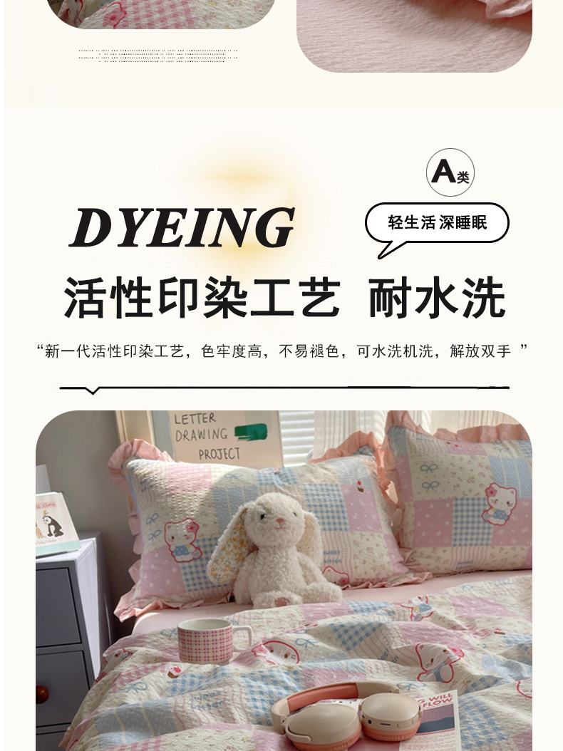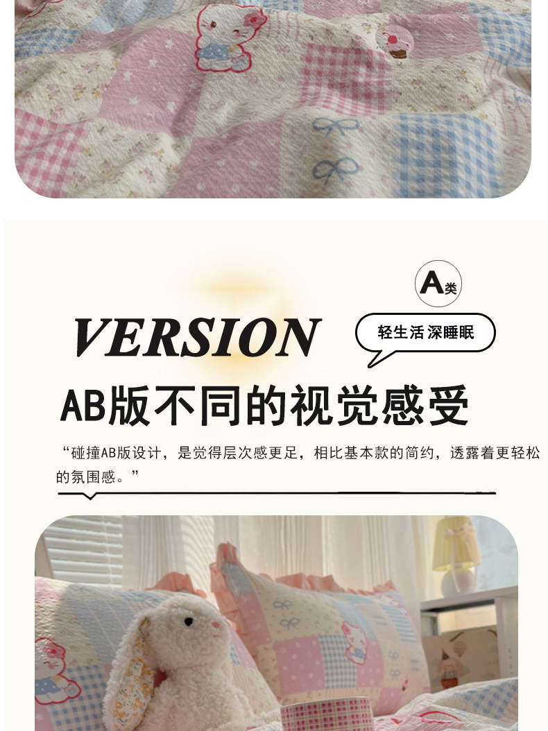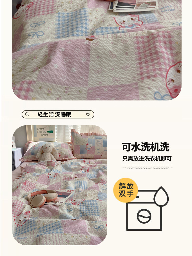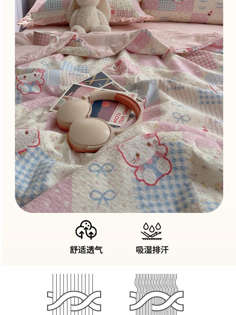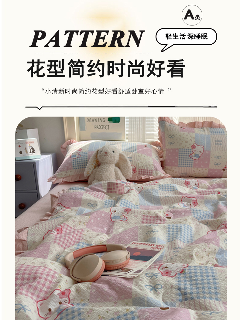 (总)迪梦姿家纺 2026新款高克重泡芙纱泡泡纱床单款四件套系列,兔仔花田,春日甜桃心米,纯宅熊,躲猫猫,花野兔眠,灰樱桃,旧街星星,猫咪集粉,莓系花伐,描线小猫咖,木马小花团,浅沙花影黄,浅沙花影蓝,田园兔,甜喵块块,甜心咖絮,甜心木马卷,小兔裙边,星野蝴蝶结,悦悦小兔,只闻花香,紫雾花蝶集