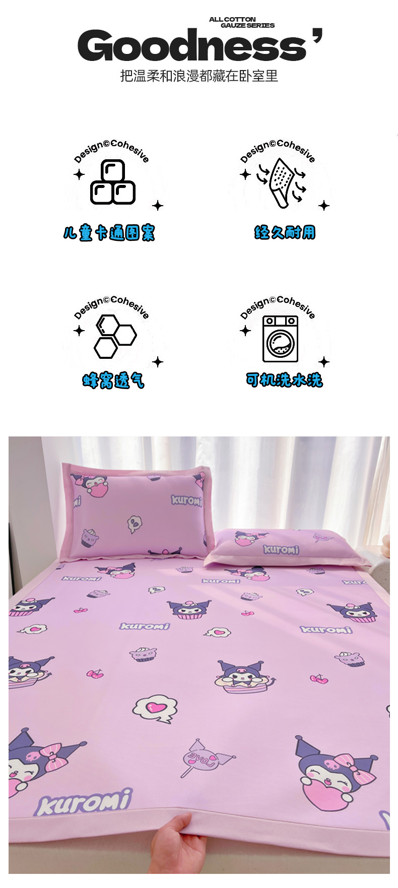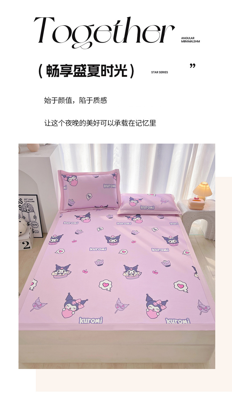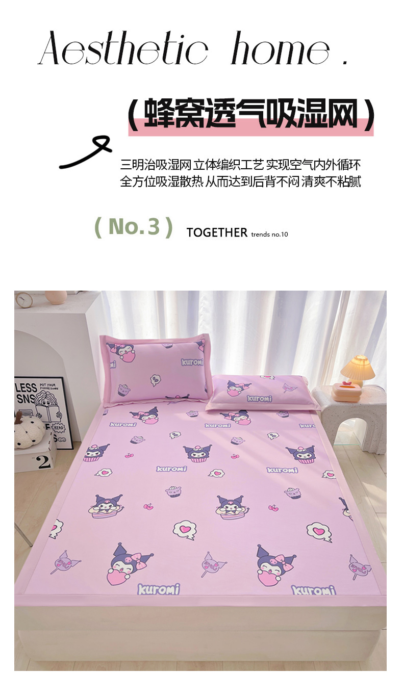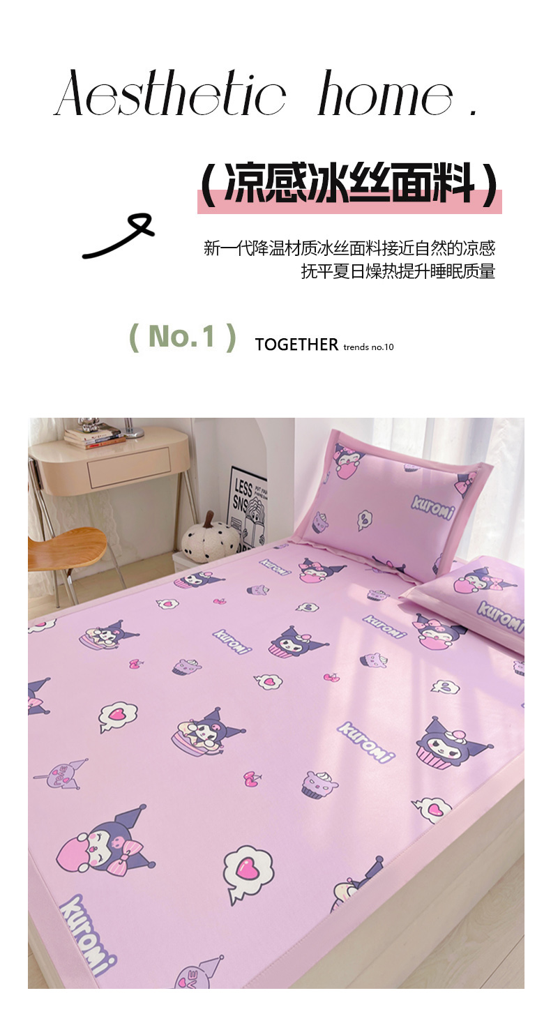 商品名称:云恋家纺 2026正版授权小版冰丝席卡通凉席三件套可折叠水洗软席子儿童单双人凉感空调席子 小版-心心库洛米