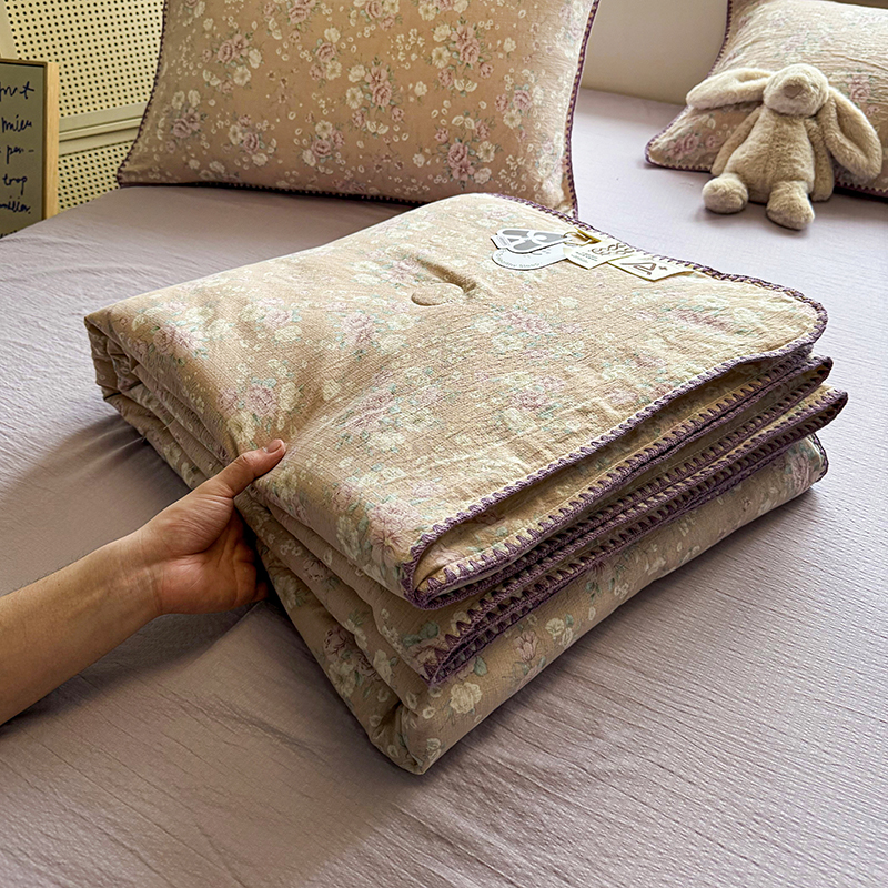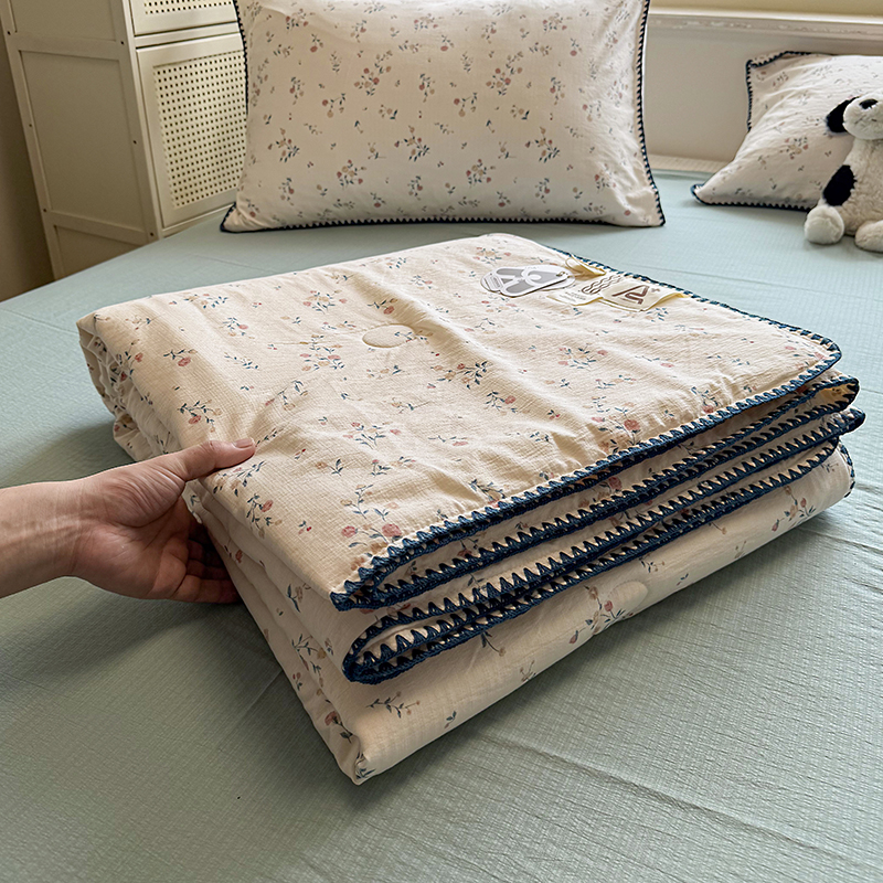 被子 > 夏被 > (总)晚爱家纺(原晚安家居) 2026新款云感双层纱三角针夏被母婴级夏凉被贝壳边贝壳绣空调被四件套
