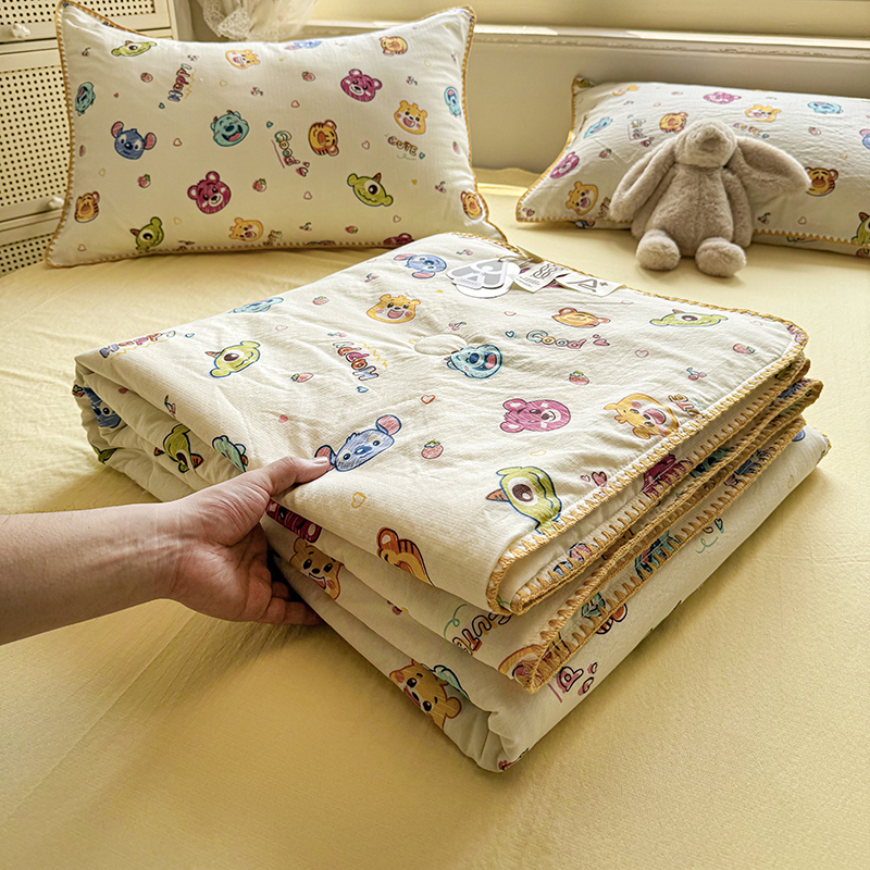 (总)晚爱 2026新款泡芙棉双层纱夏被四件套小清新泡泡纱夏被四件套,1软萌星,2星宝贝,3珍珠奶茶,4豹纹凯蒂,5喵星人,6格纹狗,7芋泥波波,8费尔岛小狗,9蓝雪花,10春风拂梦,11甜心小兔 主,12大熊猫