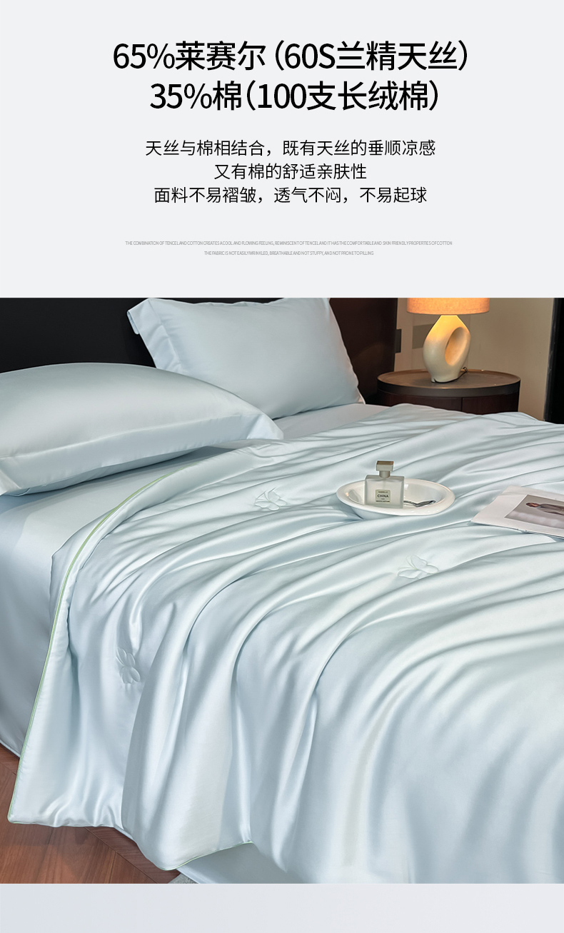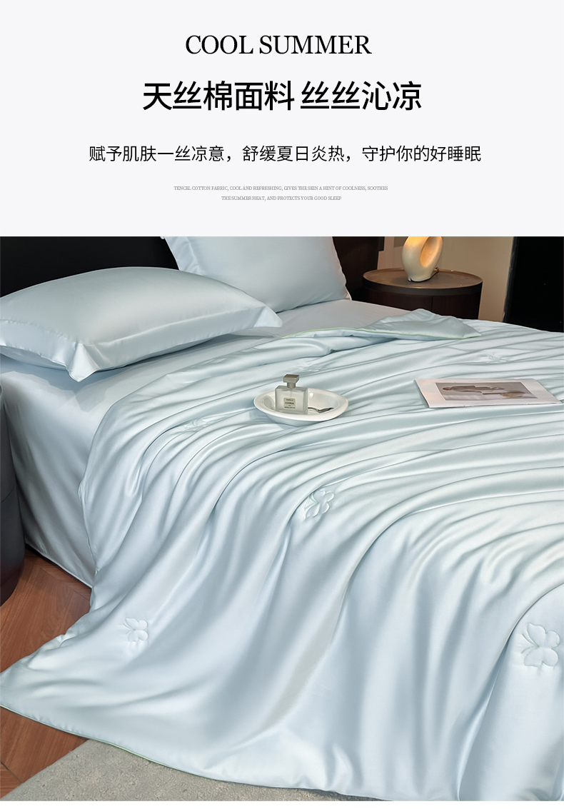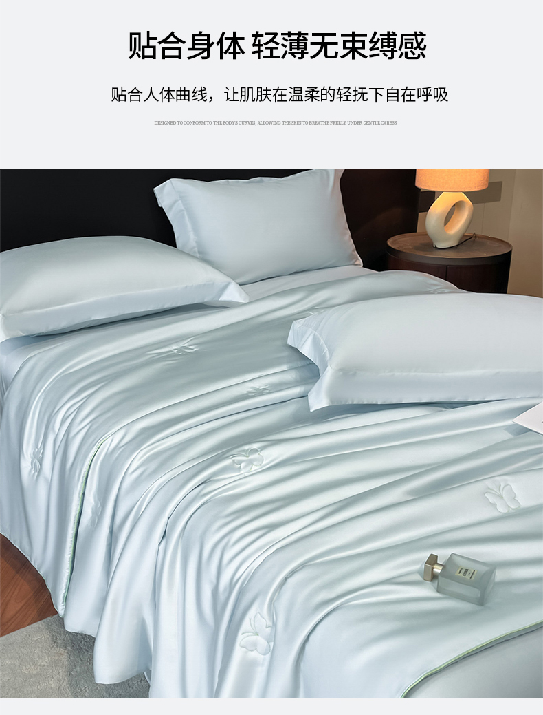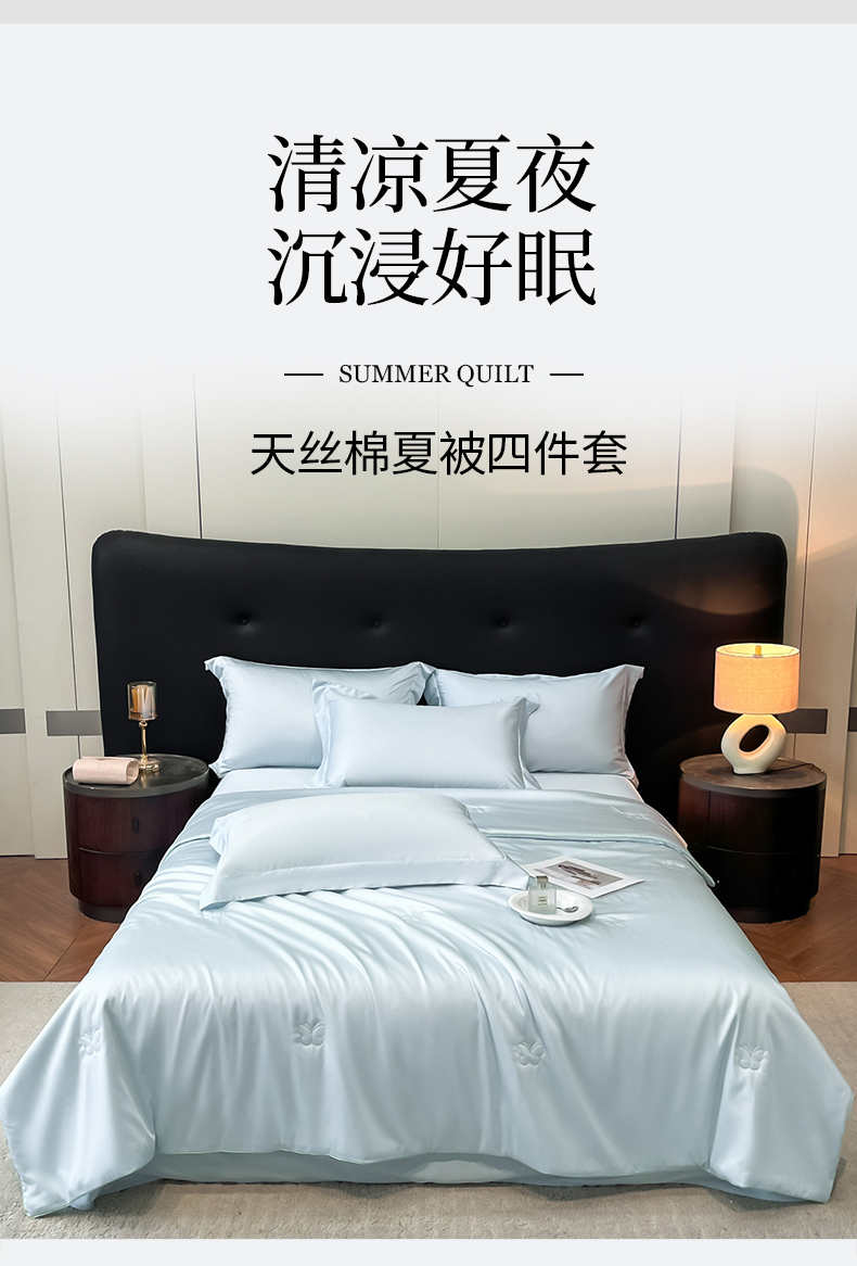 当前位置: 91家纺网 > 商品网购 > 被子 > 莱赛尔夏被 > 新方向 2026新款A类20%蚕丝天丝棉夏被四件套蝴蝶系列 蝴蝶-微光蓝