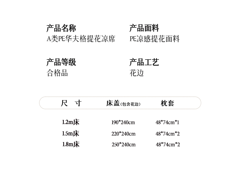 商品名称:(总)山茶家居-原创设计(原山茶家纺) 2026新款A类提花华夫格床盖款凉席三件套-罗马假日