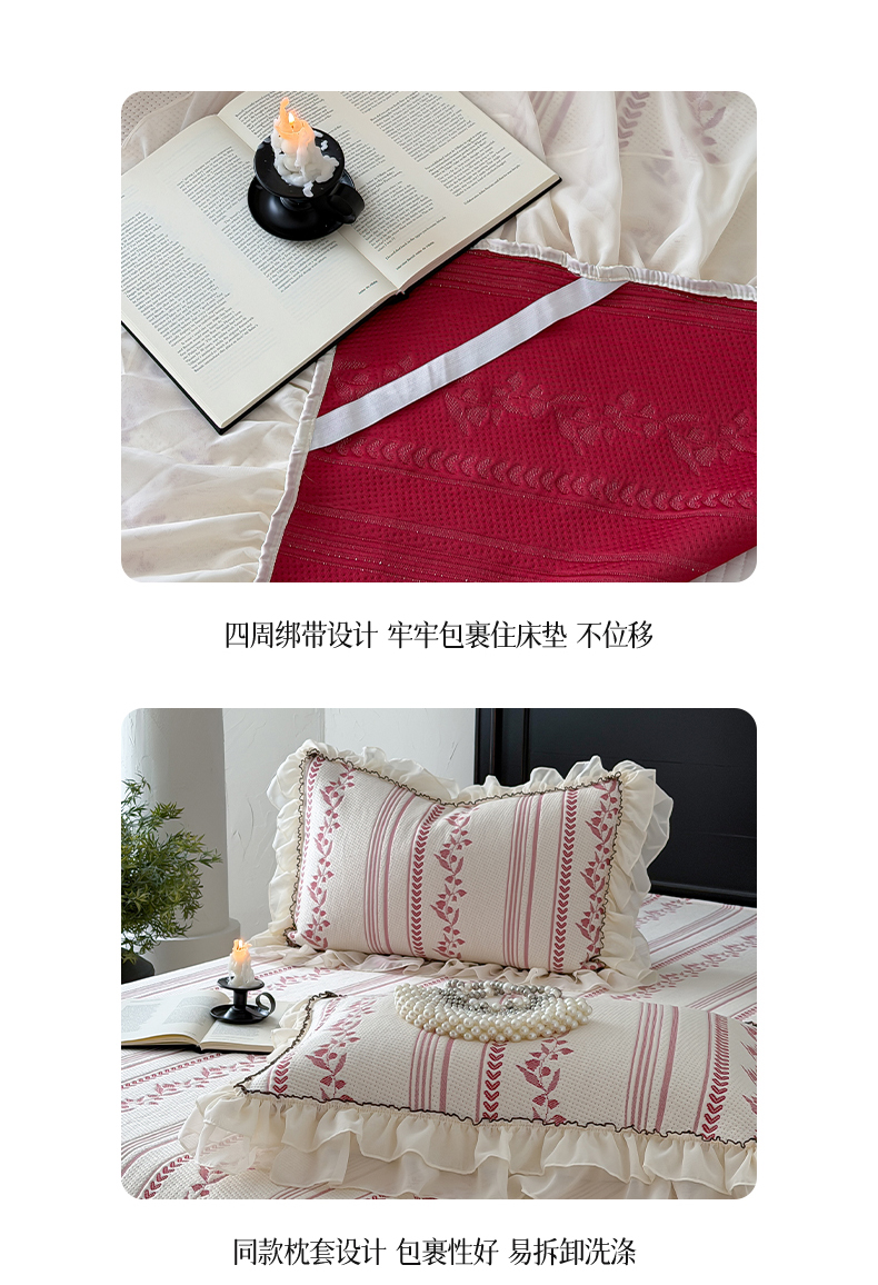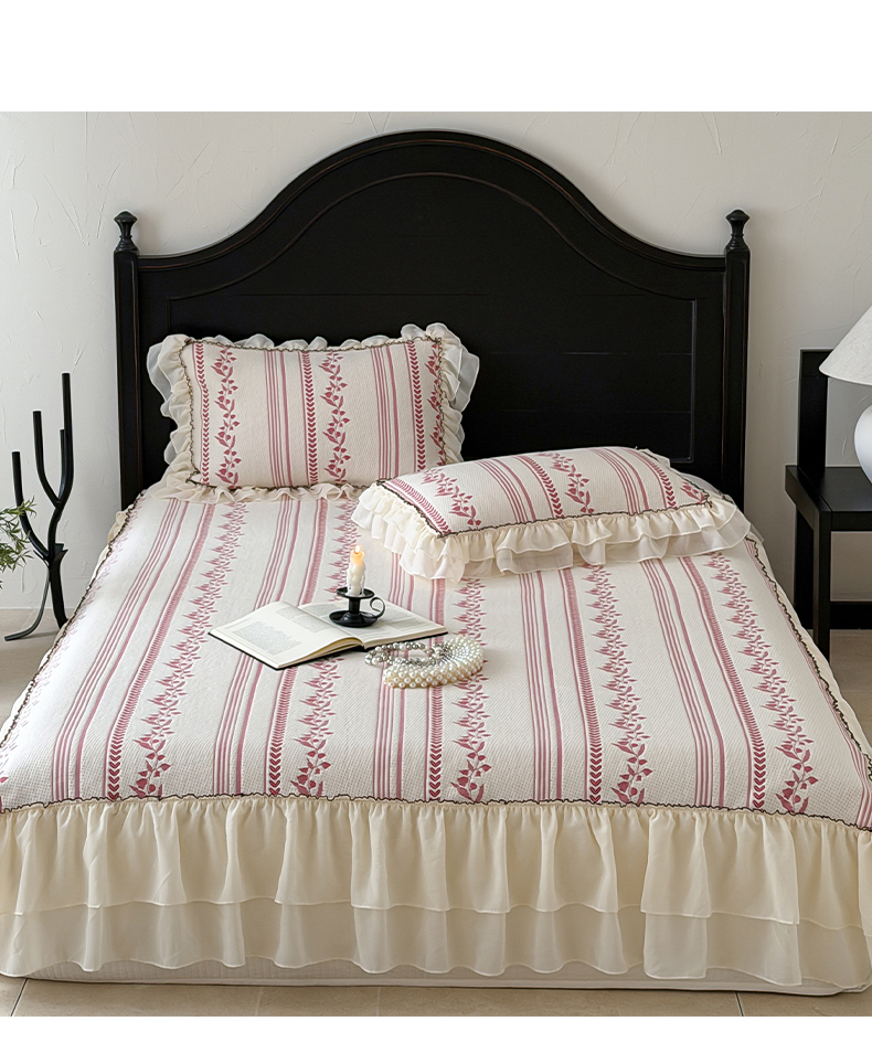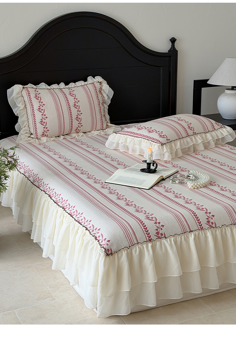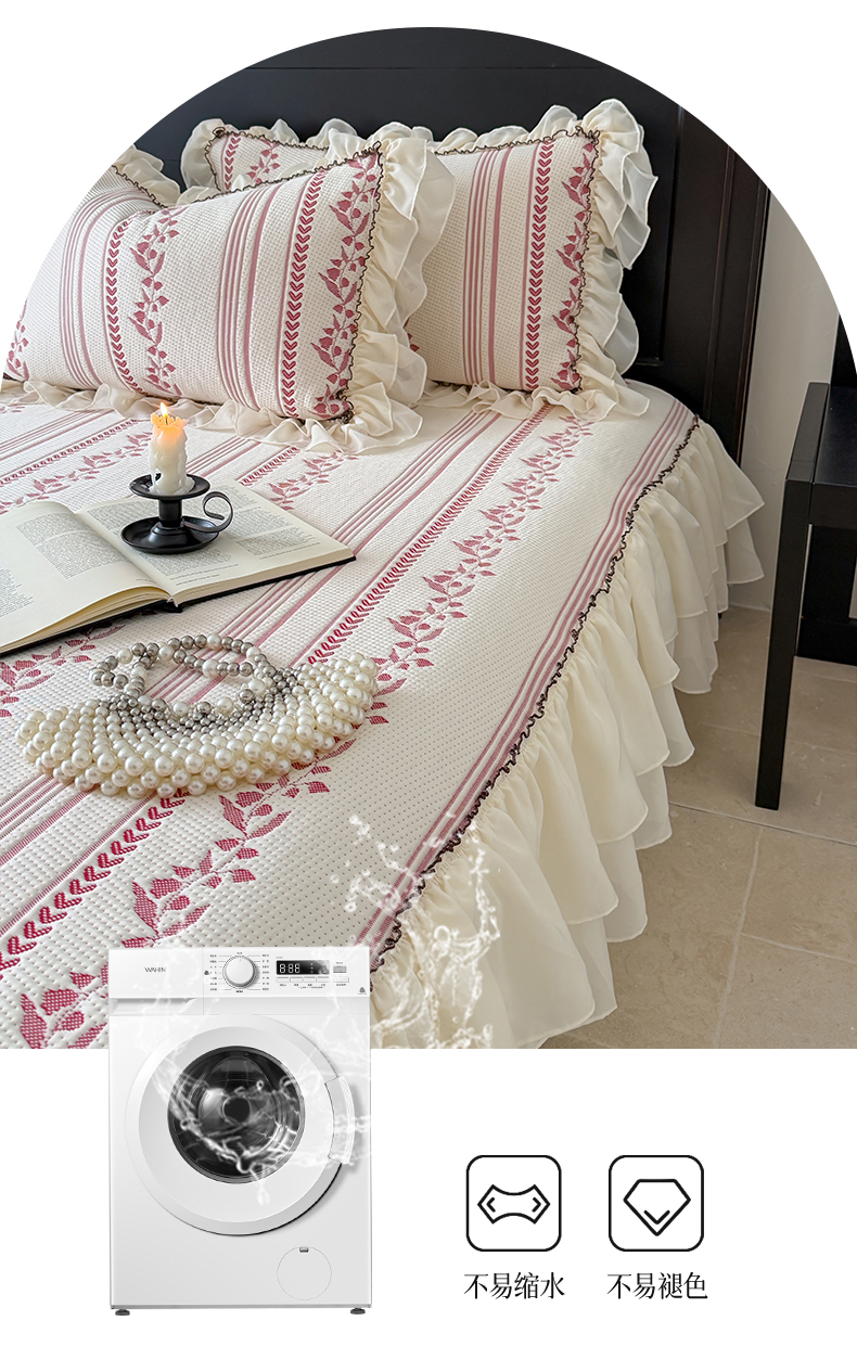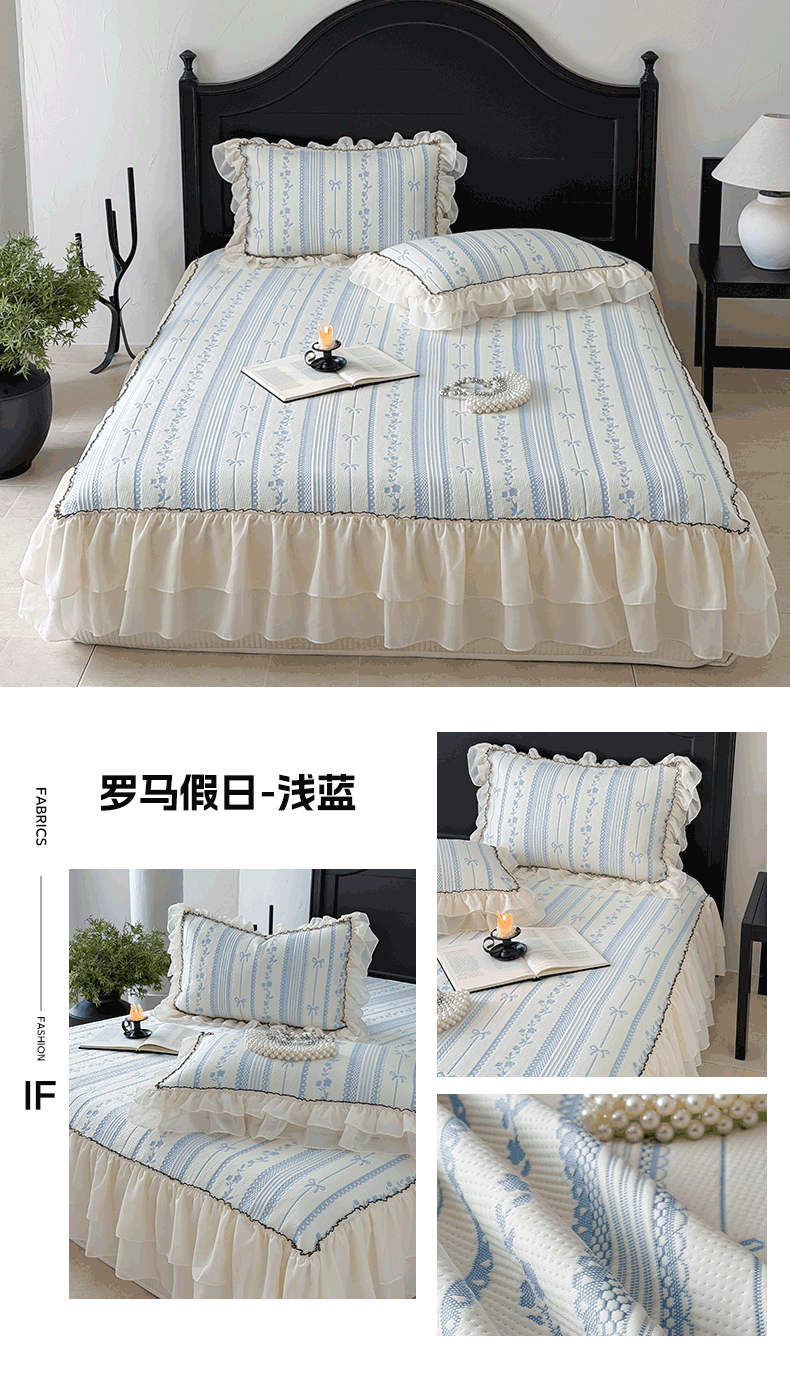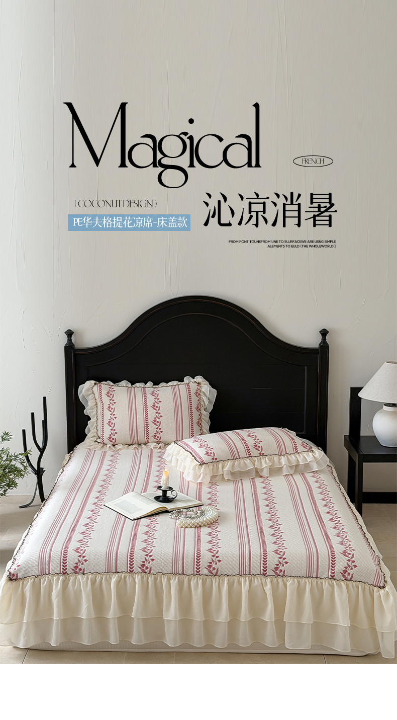 (总)山茶家居-原创设计(原山茶家纺) 2026新款A类提花华夫格床盖款凉席三件套-罗马假日