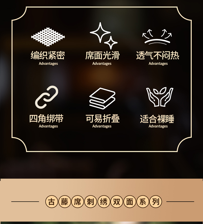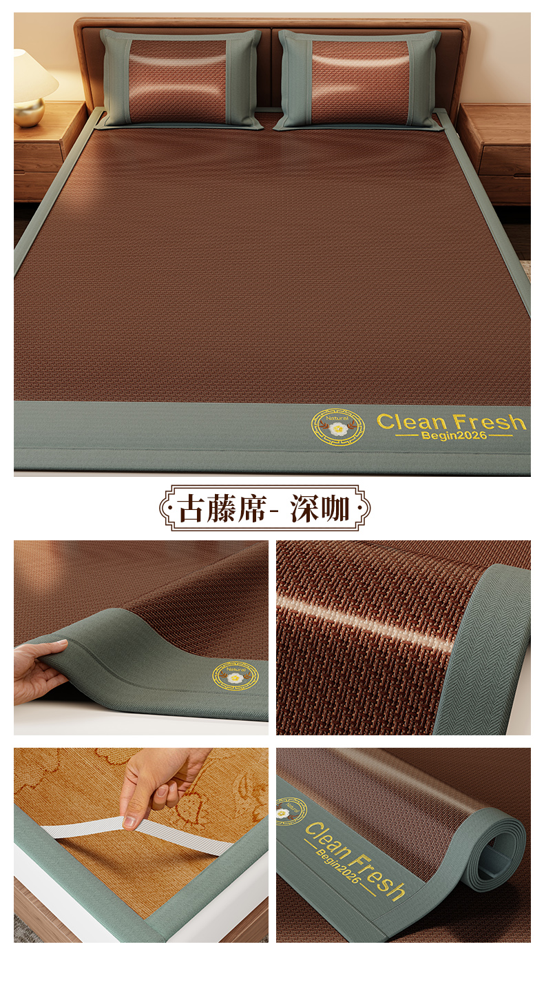 (总)怡源梦 2026新款古藤席刺绣双面系列,古藤席-棕色,古藤席-灰色,古藤席-绿色,古藤席-深咖