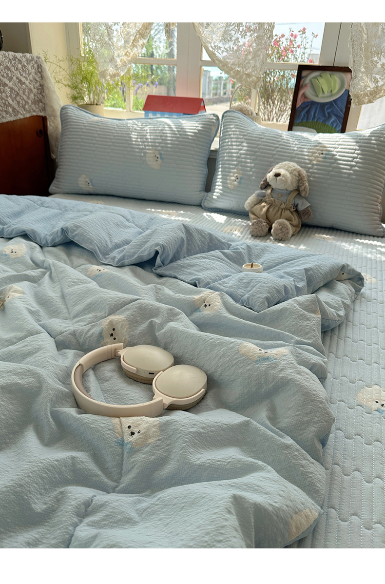 当前位置: 91家纺网 > 商品网购 > 床品套件 > 四件套 > 夏被四件套 > 初念 2026新款高品质A类泡芙纱床盖夏被四件套-青提系列(晚风渐热,温柔续夏) 青提-蓝领结狗
