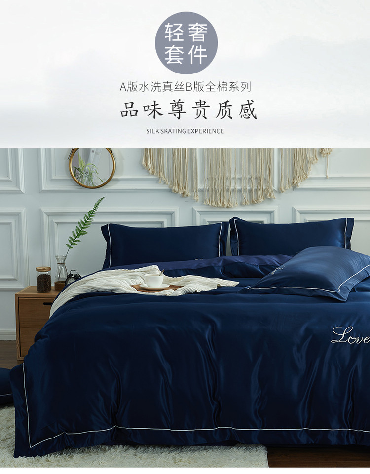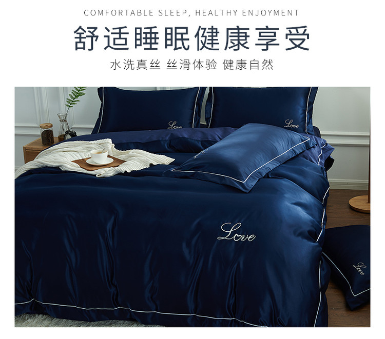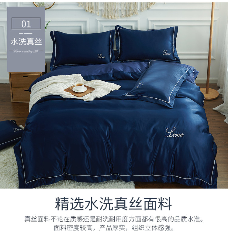 (总)意尚风情 2022新款莫代尔天丝水洗真丝绣花夏被四件套,宾利蓝,纯白,粉玉,高级灰,墨绿,深蓝,水绿,香槟