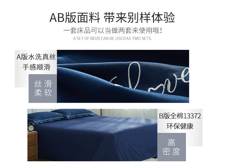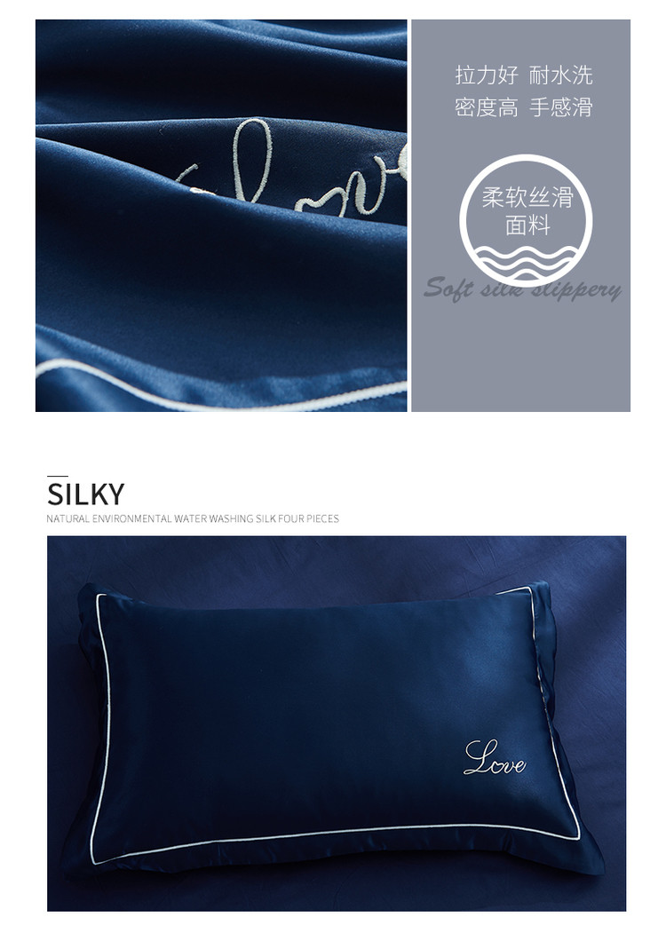 商品名称:意尚风情 2020新款·绣花水洗真丝四件套床单款坎蒂丝(蓝)