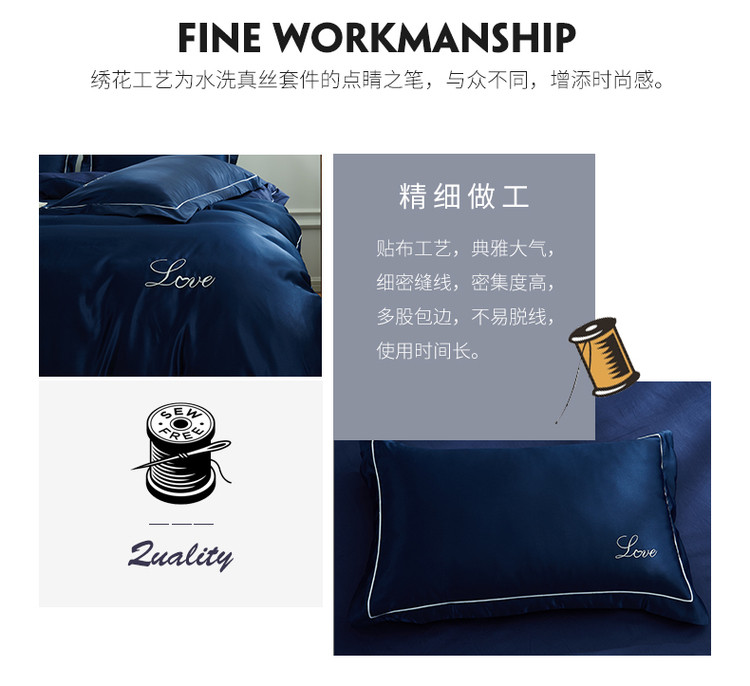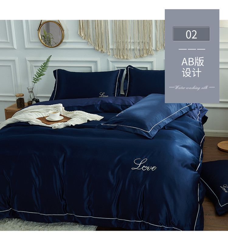 (总)意尚风情2023水洗真丝拼色绣花工艺款四件套,宝石蓝,皓月白+绅士灰,魅紫+浅咖,深海蓝+樱花粉,水绿+樱花粉,香槟+绅士灰,樱花粉+绅士灰,祖母绿+姜黄