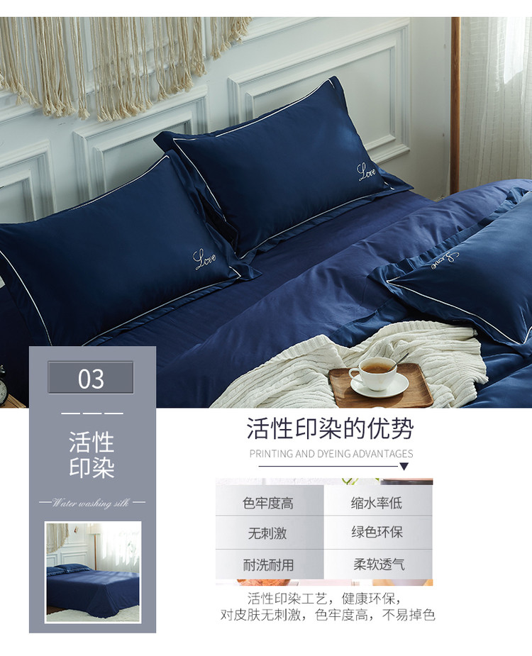 意尚风情 2020新款·绣花水洗真丝四件套床单款坎蒂丝(蓝)