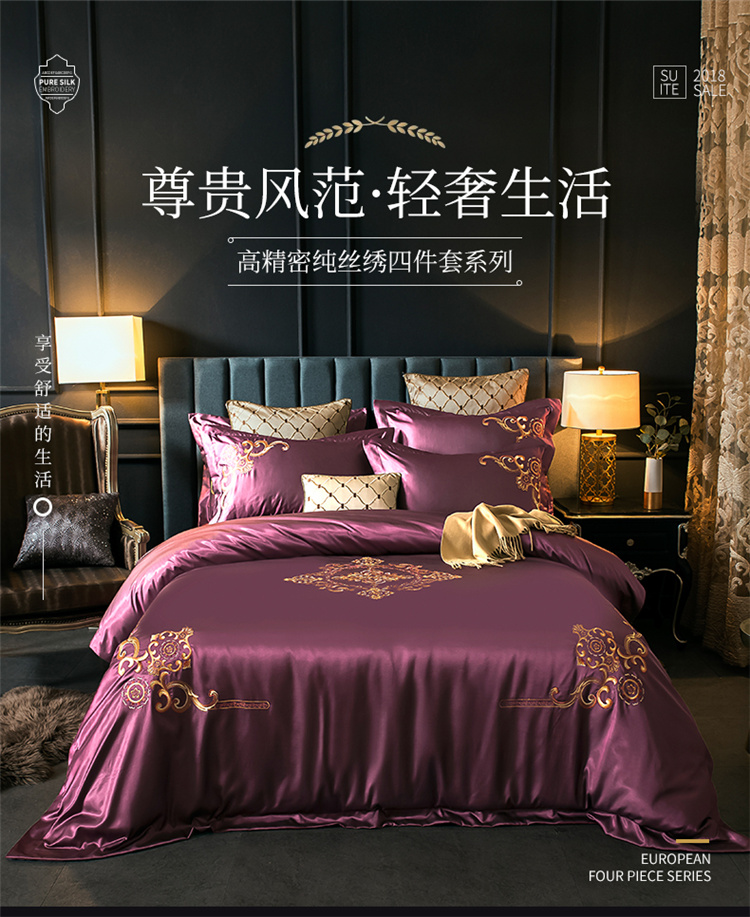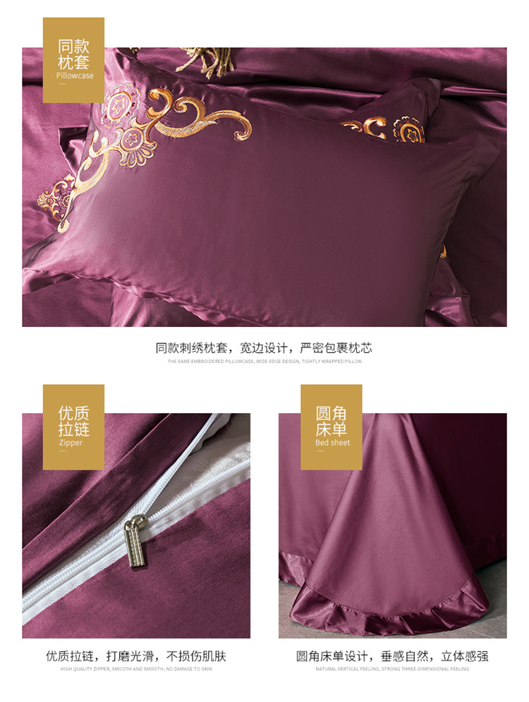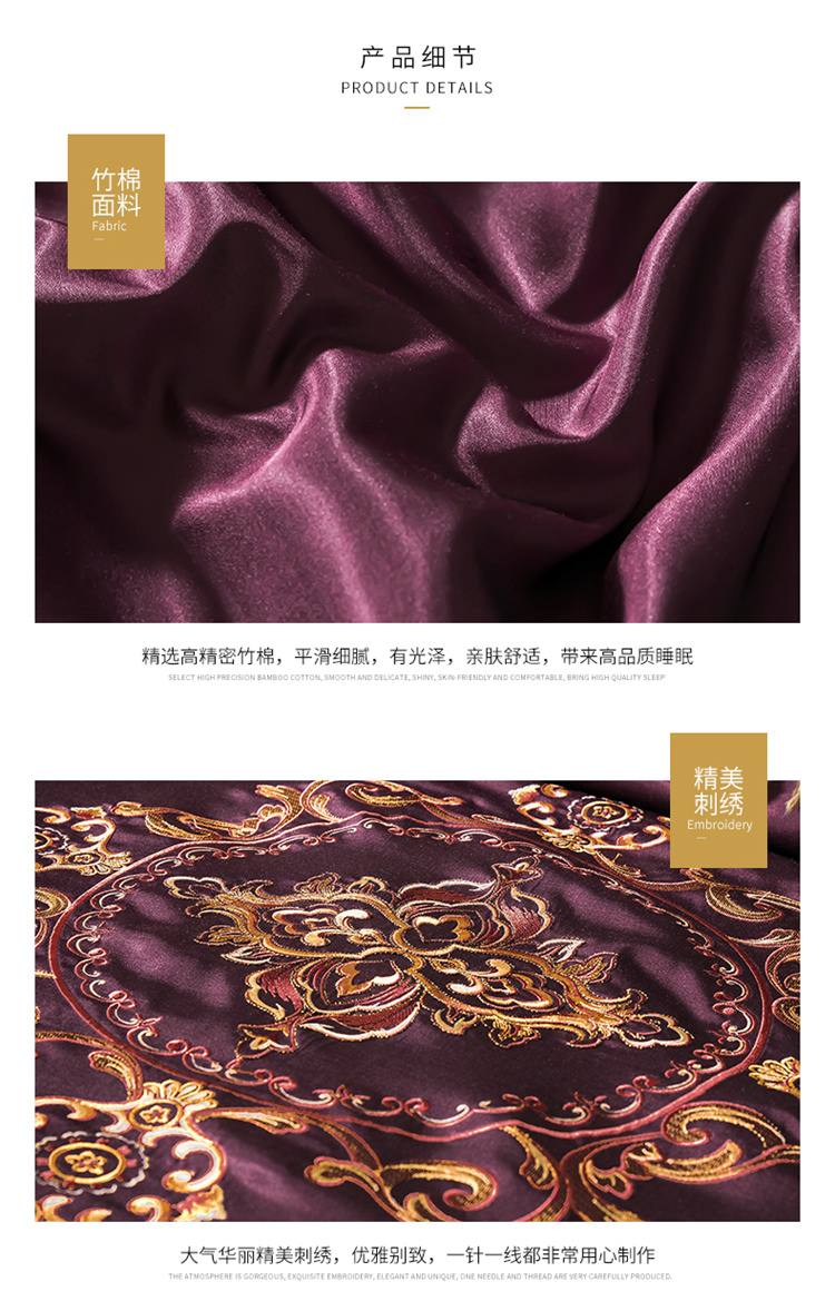 千禧 2024新款贡缎磨毛婚庆绣花多件套 盛世华庭(彩色绣),盛世华庭(彩色绣)