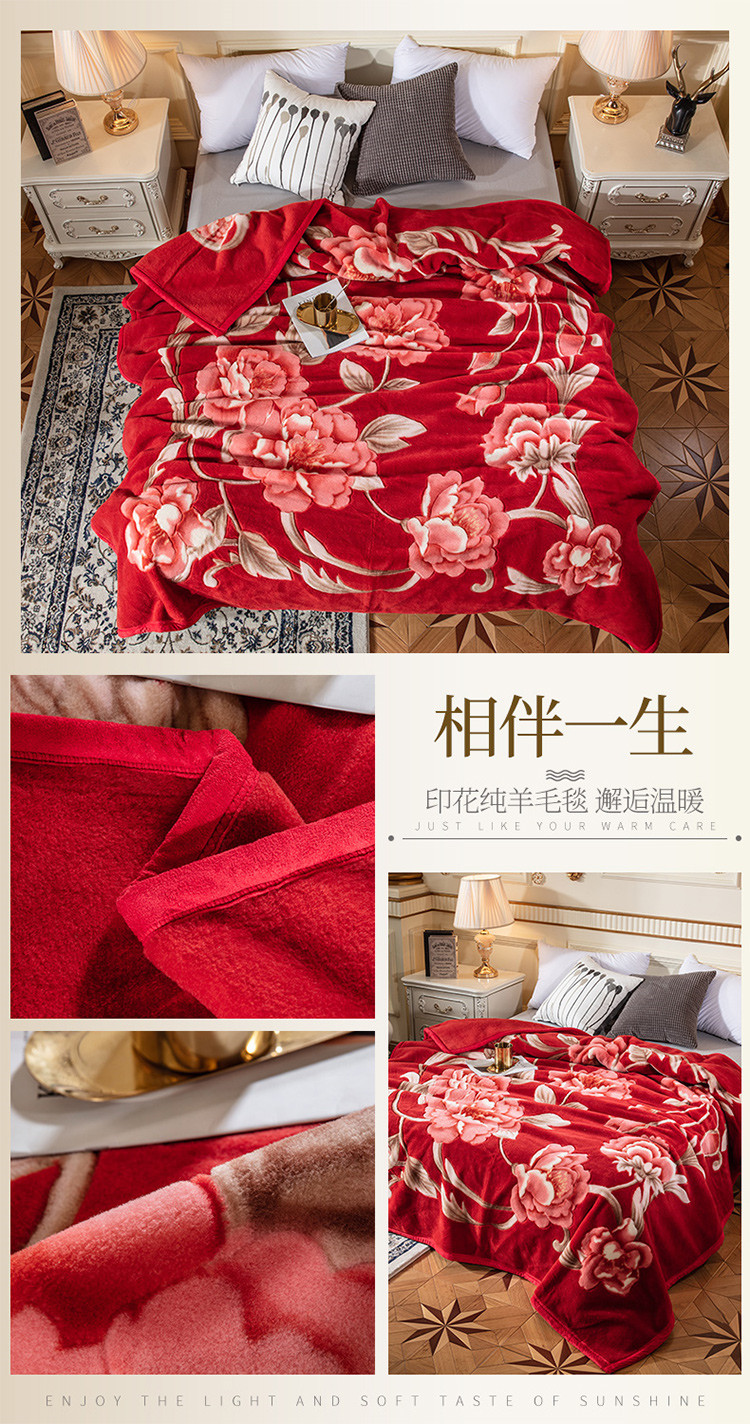 (总)凯轩毛毛毯毯子 单层全羊毛毛毯毯子.婚庆保暖毛毯毯子大红结婚毛毛毯毯子