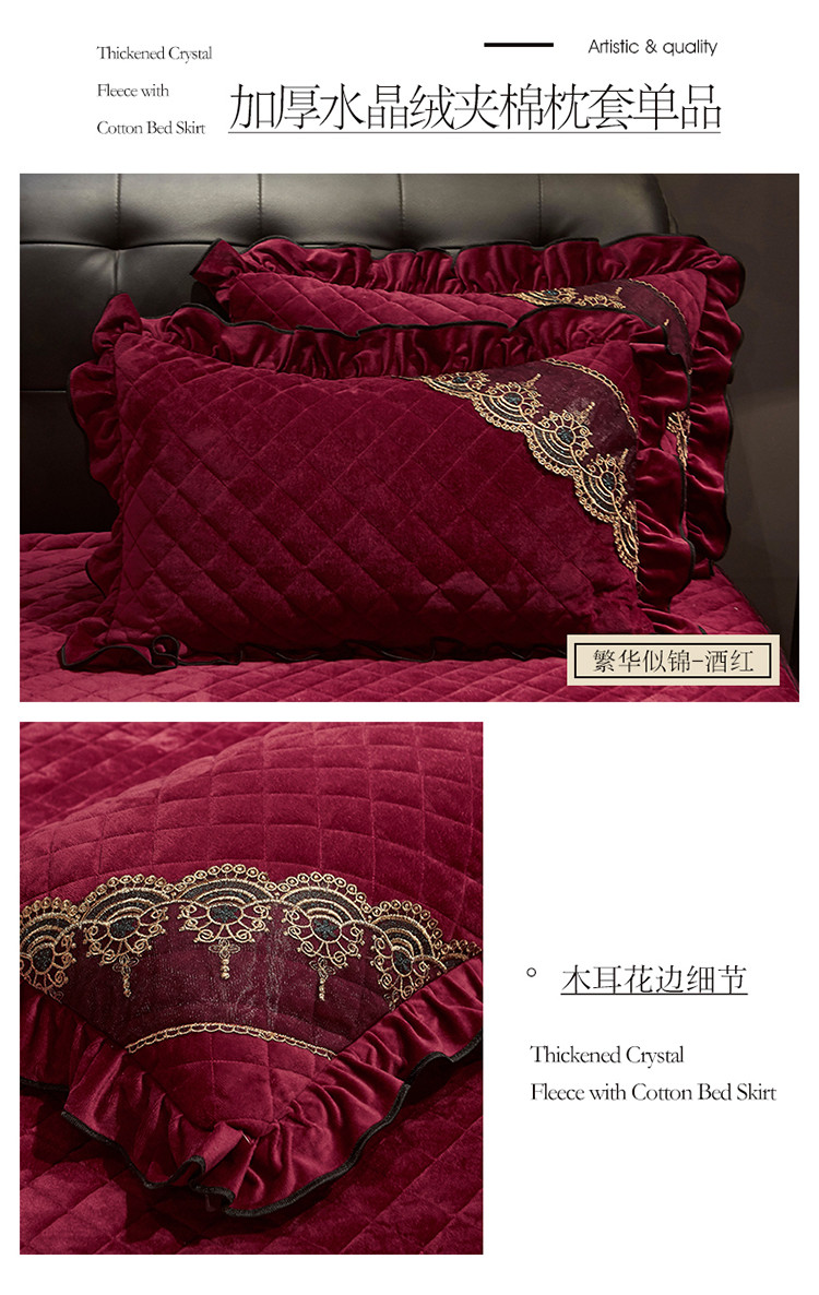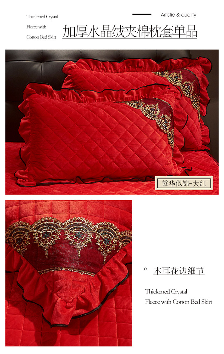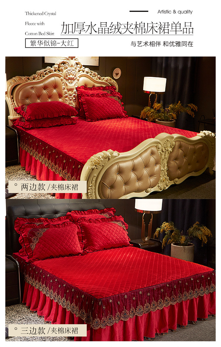 (总)宜凡家纺 2025新款婴儿绒压花全夹棉床裙四件套,韵雅-中国红,韵雅-黑天鹅
