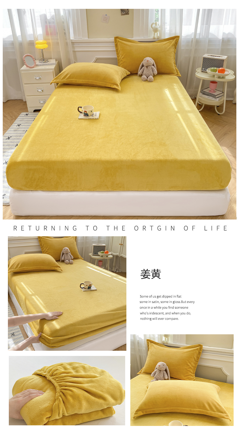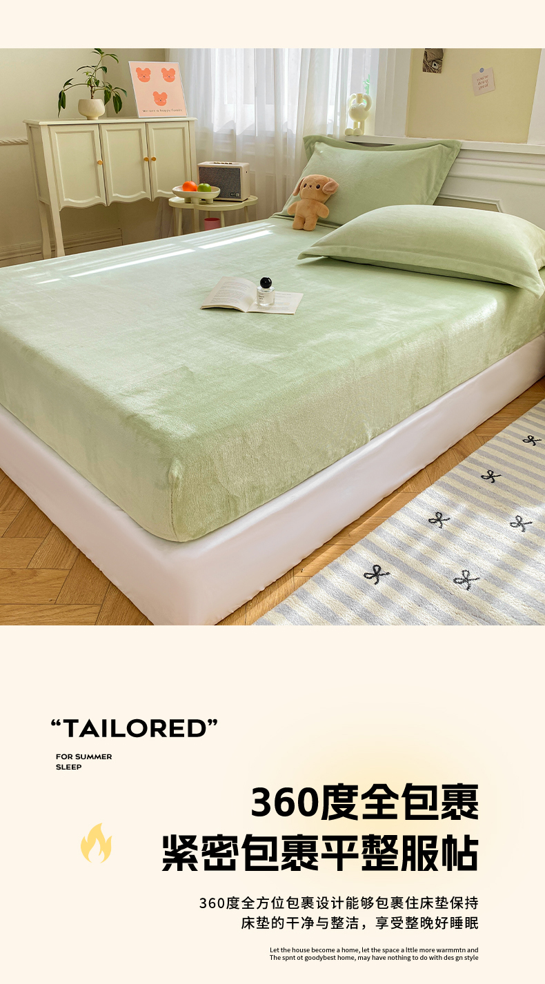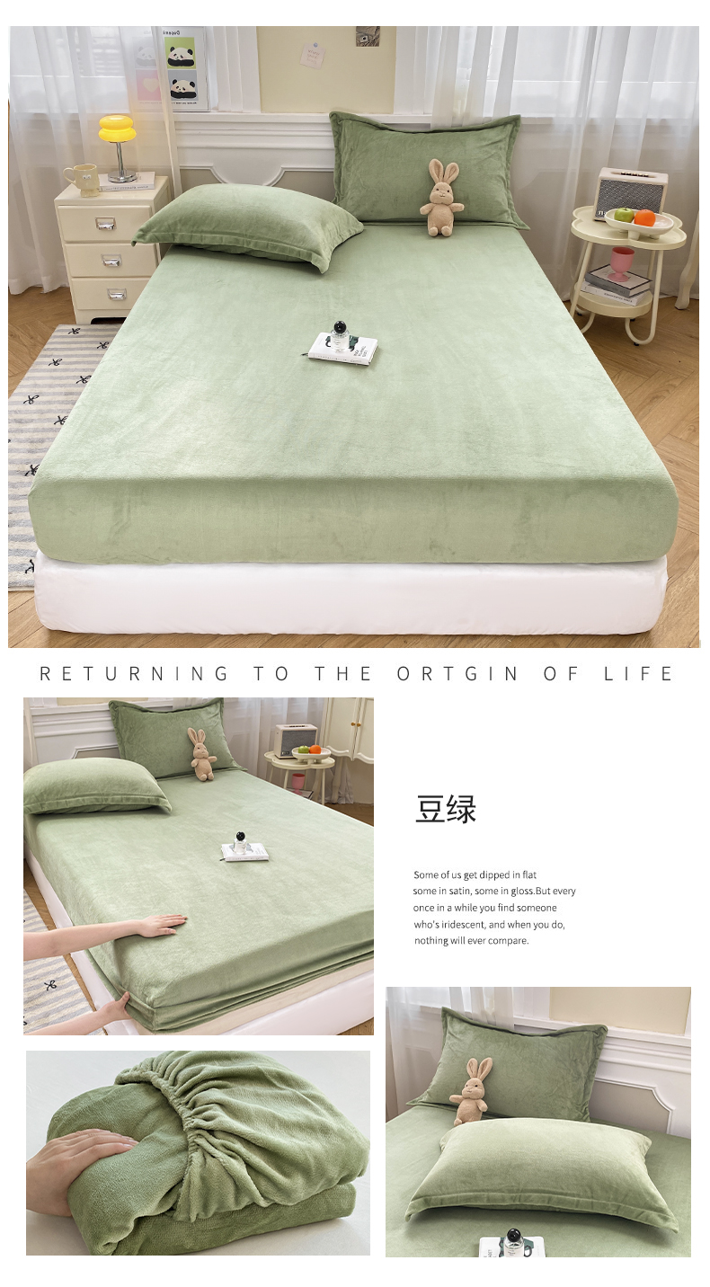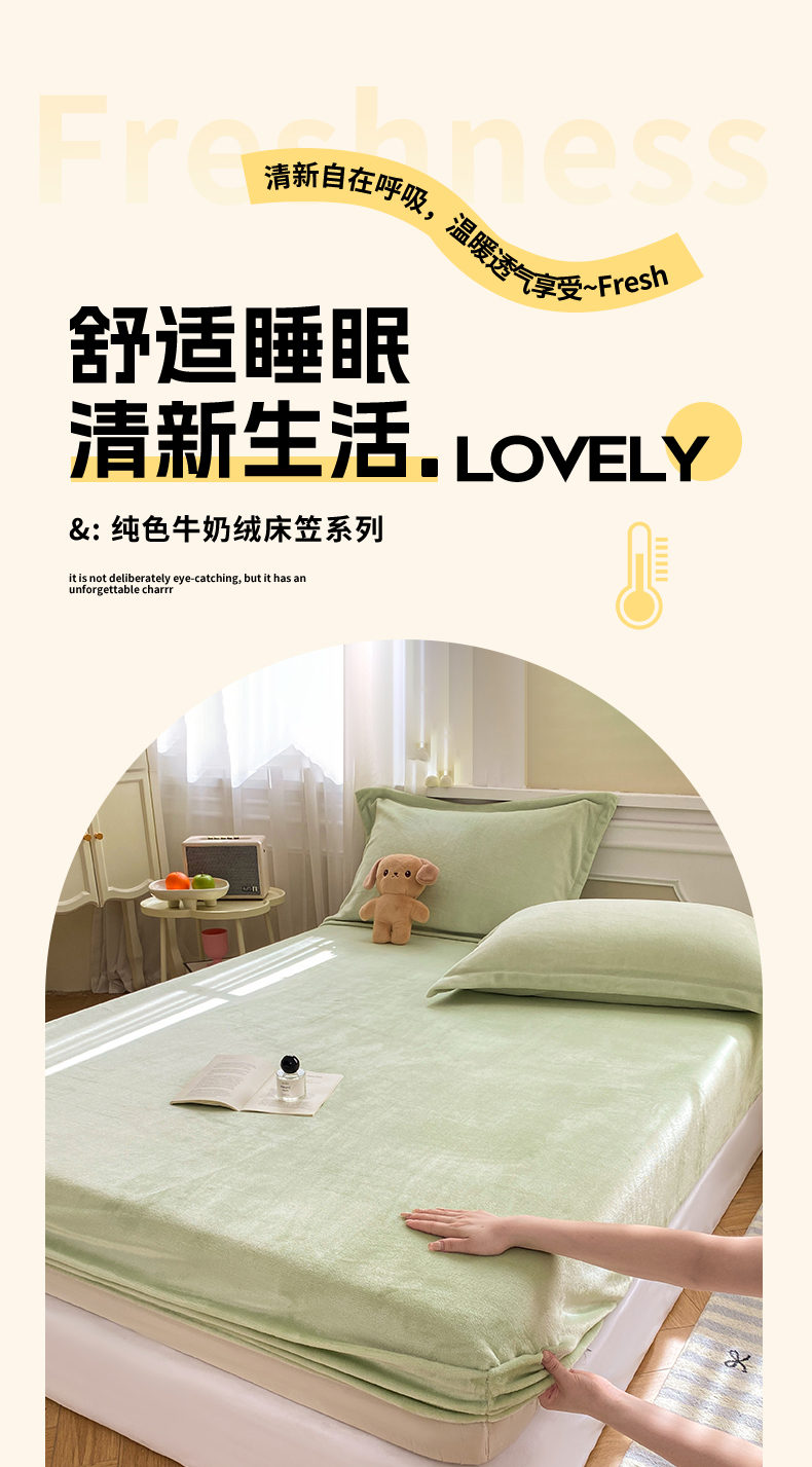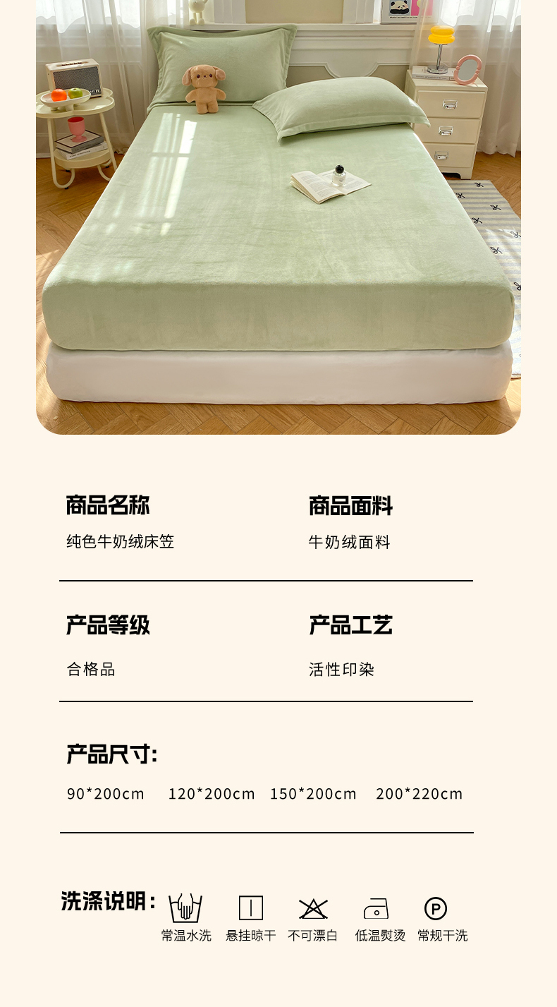 源舍家纺 2024新款纯色牛奶绒单床笠,豆绿,鹅黄,粉色,果绿,焦糖,咖色,浅卡,浅蓝,浅紫,中灰