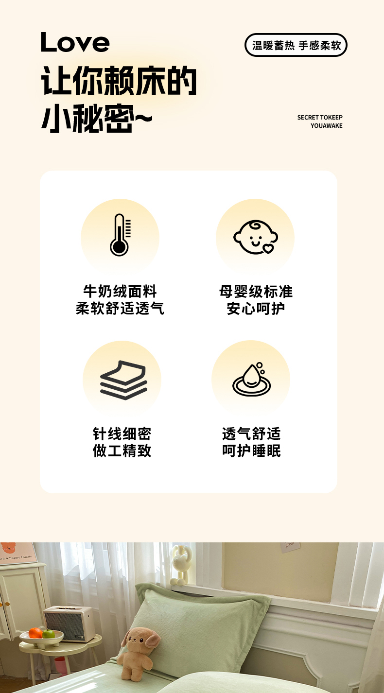 商品名称:源舍家纺2024新款纯色牛奶绒单床笠
