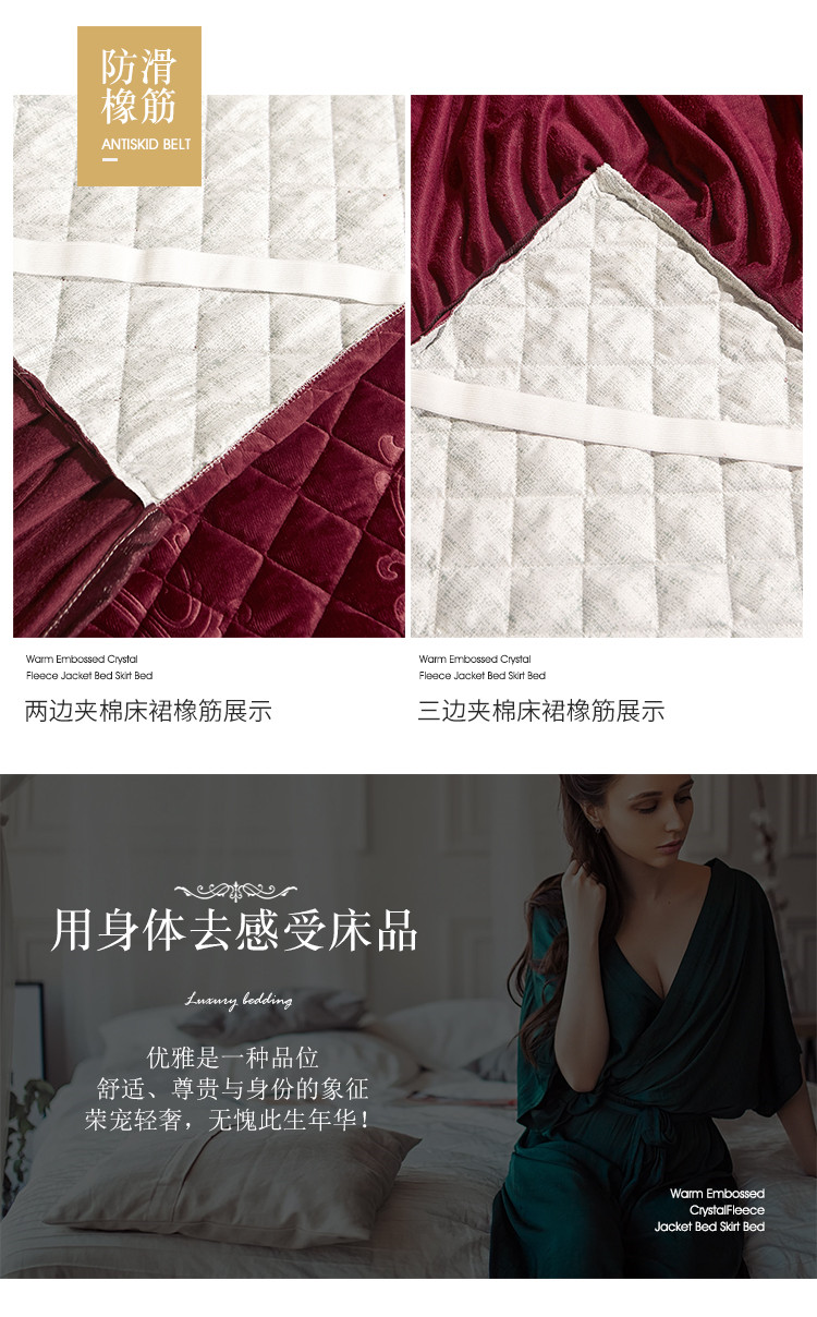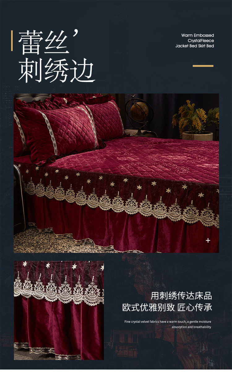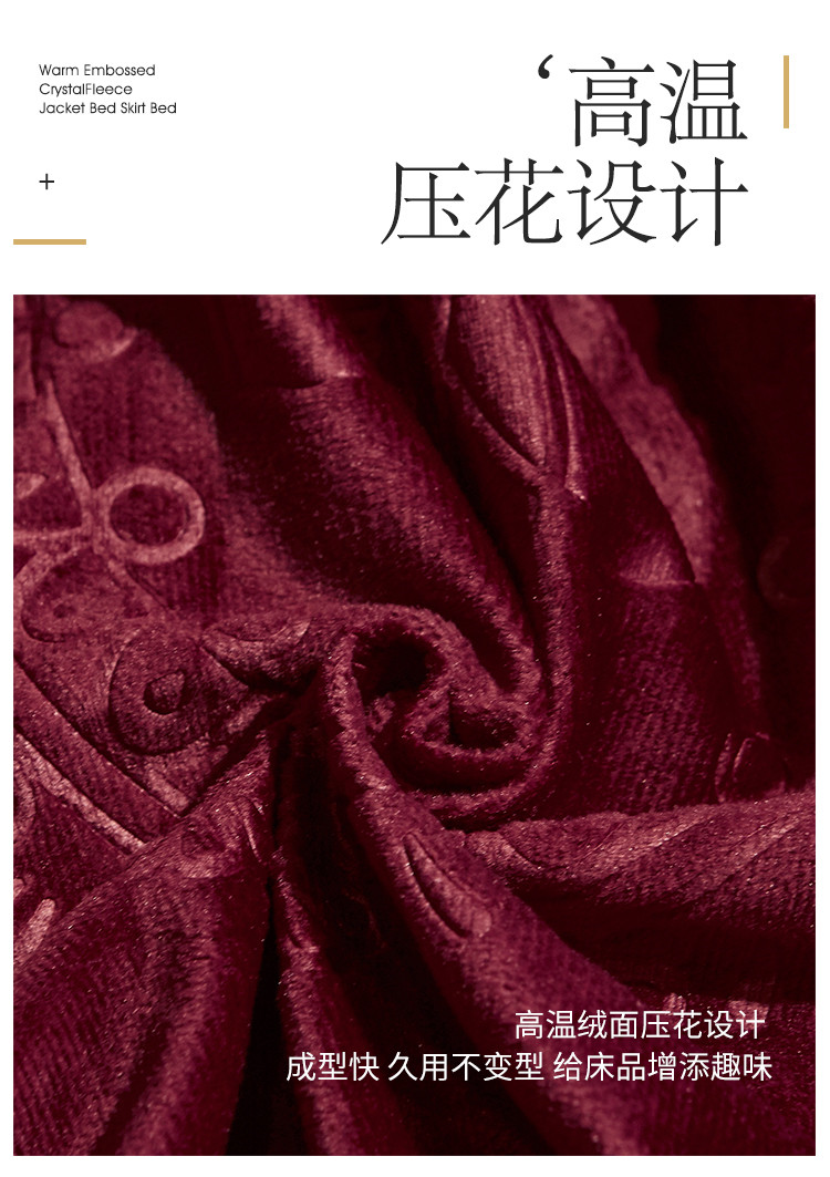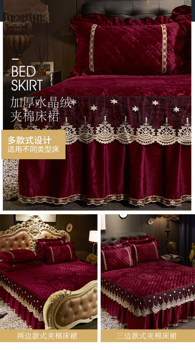 商品名称:宜凡家纺 2019新款水晶绒夹棉床裙四件套 花之都-酒红
