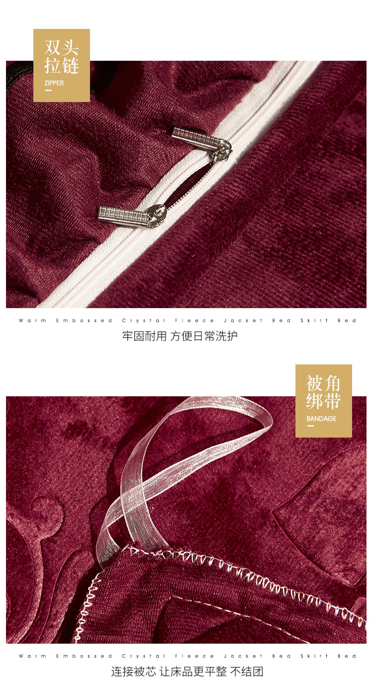 (总)宜凡家纺 2025新款婴儿绒压花全夹棉床裙四件套,韵雅-中国红,韵雅-黑天鹅