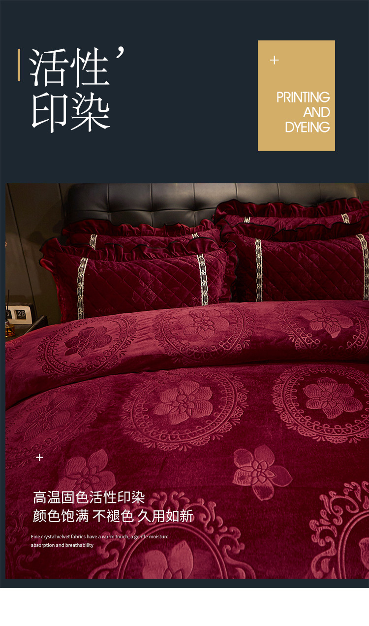 (总)宜凡家纺 2025新款婴儿绒压花全夹棉床盖四件套,韵雅-中国红,韵雅-黑天鹅