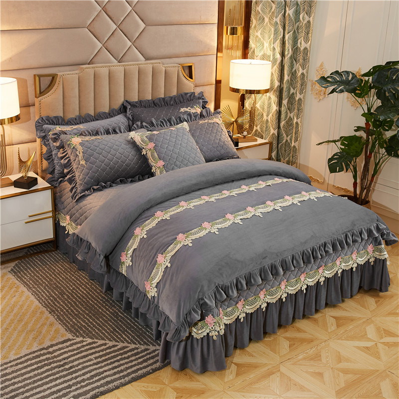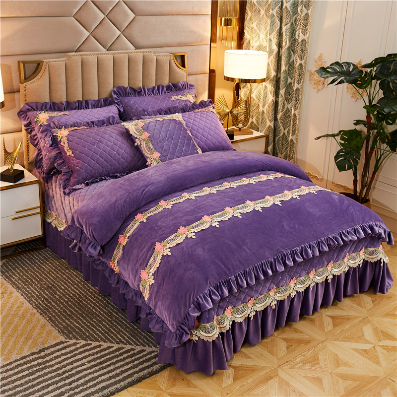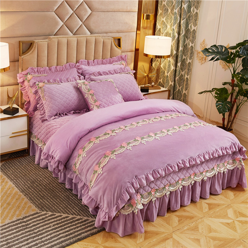 (总)菊上家纺 2023秋冬新品法式花边全棉床盖四件套,安妮紫,花千骨,小欢喜,布拉格,罗蔓莉,玛雅灰,小幸运,卡町绿,恋花影,薇薇安