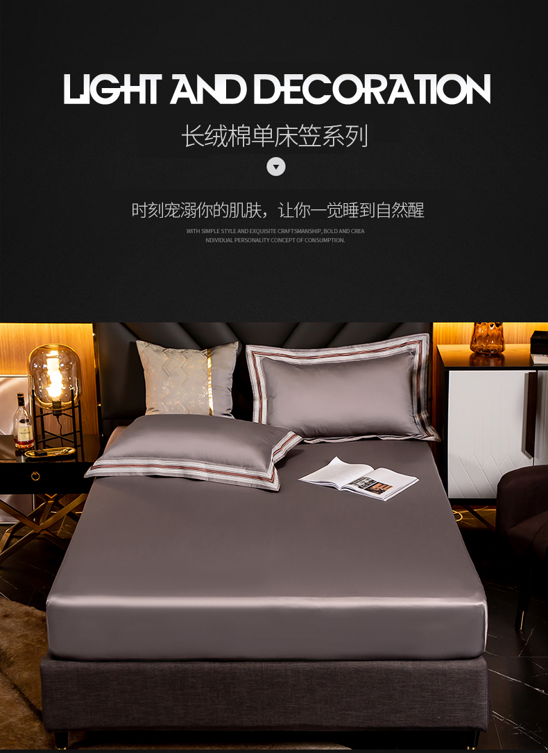 凯磊家纺 2019新款高支高密.简约风长绒棉单床笠 爱丽丝-水咖