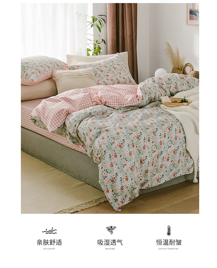 (总)珺柔家纺 2025新款全棉双层纱印花四件套,粉豹纹,焦糖小曲奇,礼物女孩,猫狗日记,奶油星空,线条苹果猫,小飞象,小狗的家,樱桃,樱桃西高地