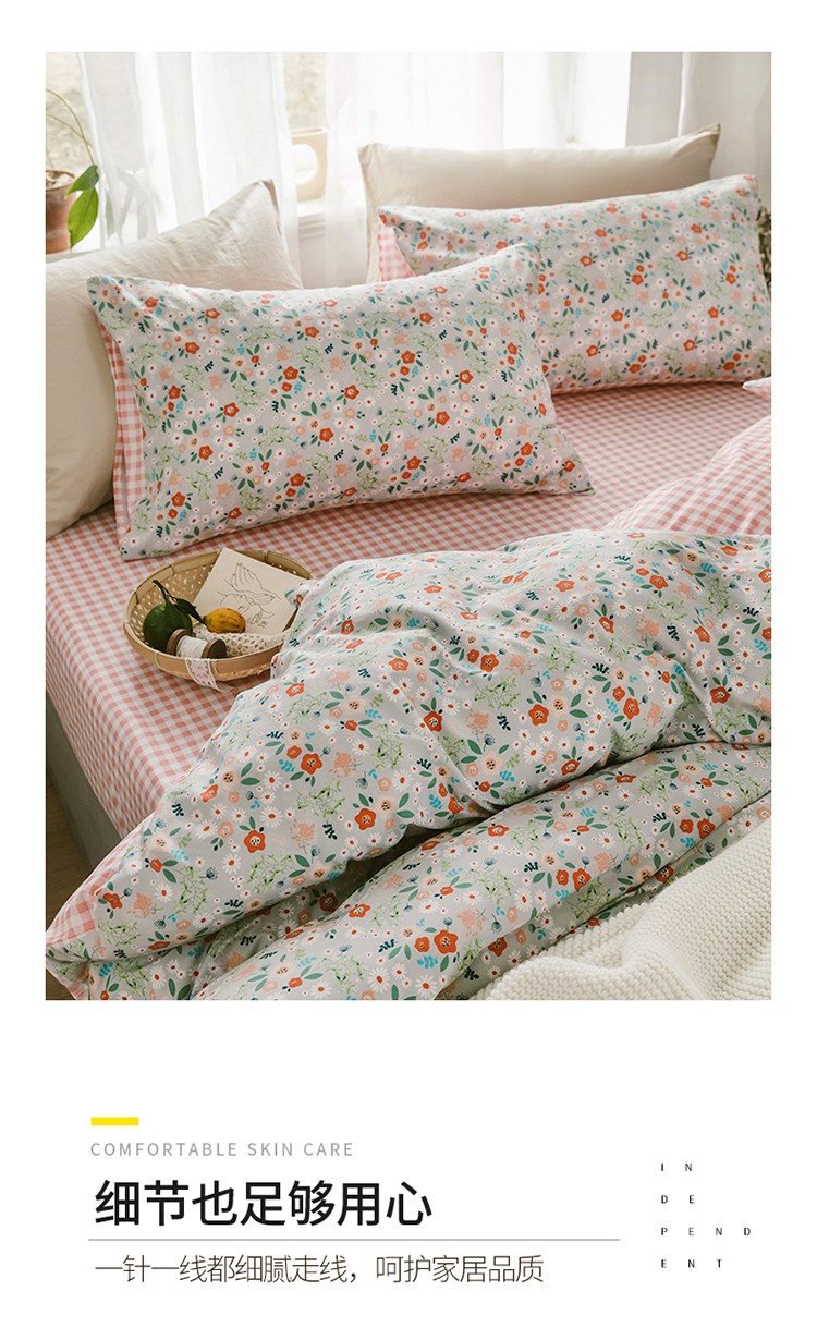 (总)2023新款40支纱全棉13070锁边工艺款四件套系列,格子爱心,嘉兰,咖条,朗尼,小兔兔,星星兔