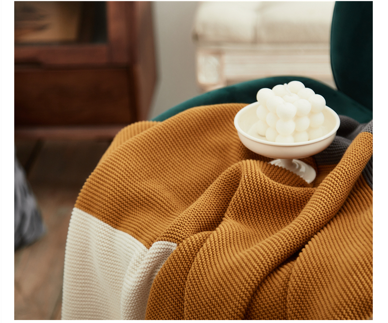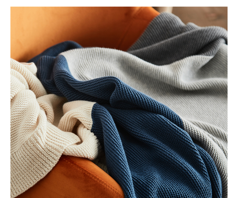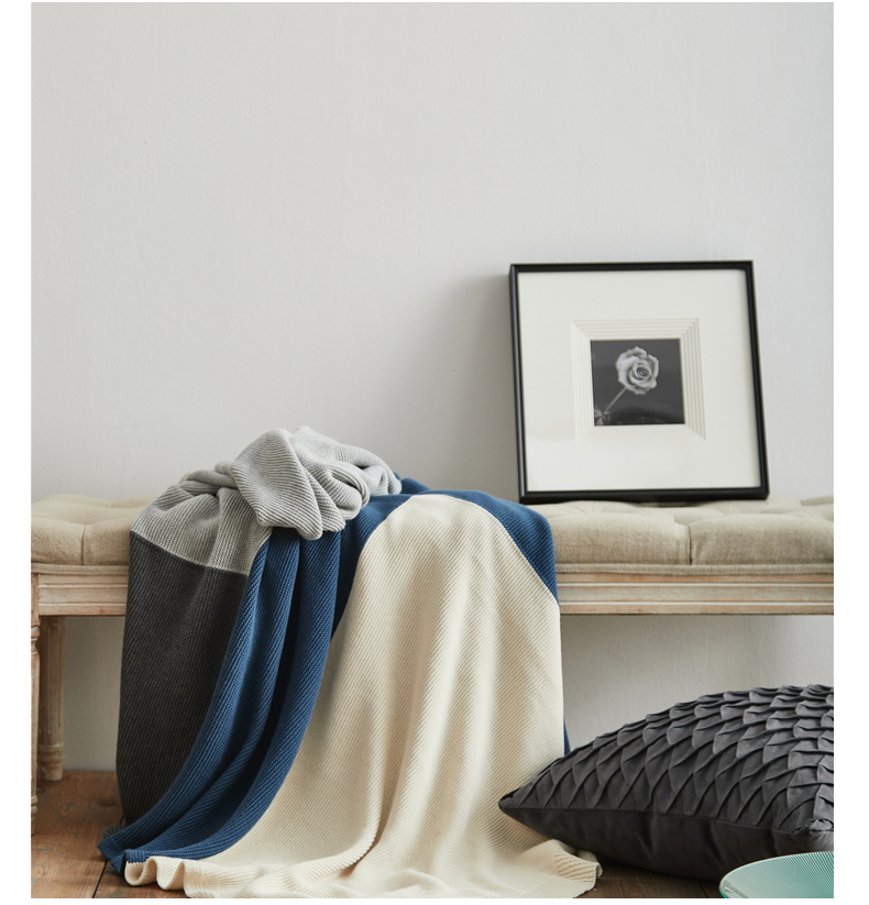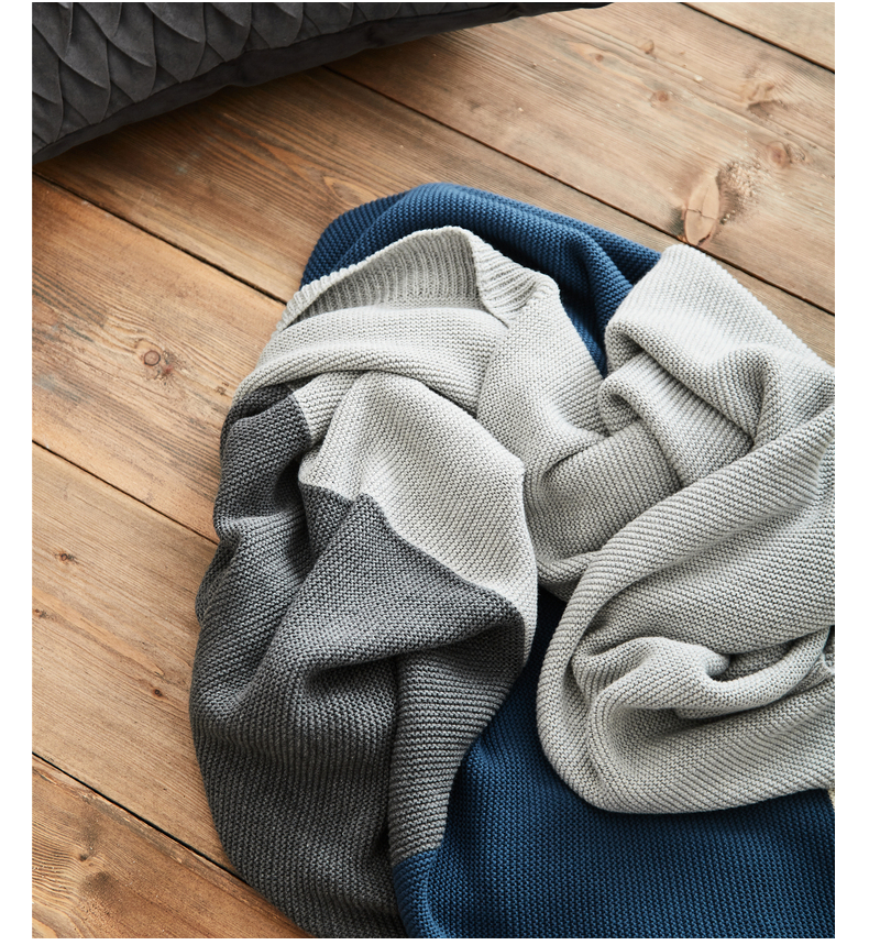暖绵绵若拉系列毛毯针织毯子线毯 拼色蓝