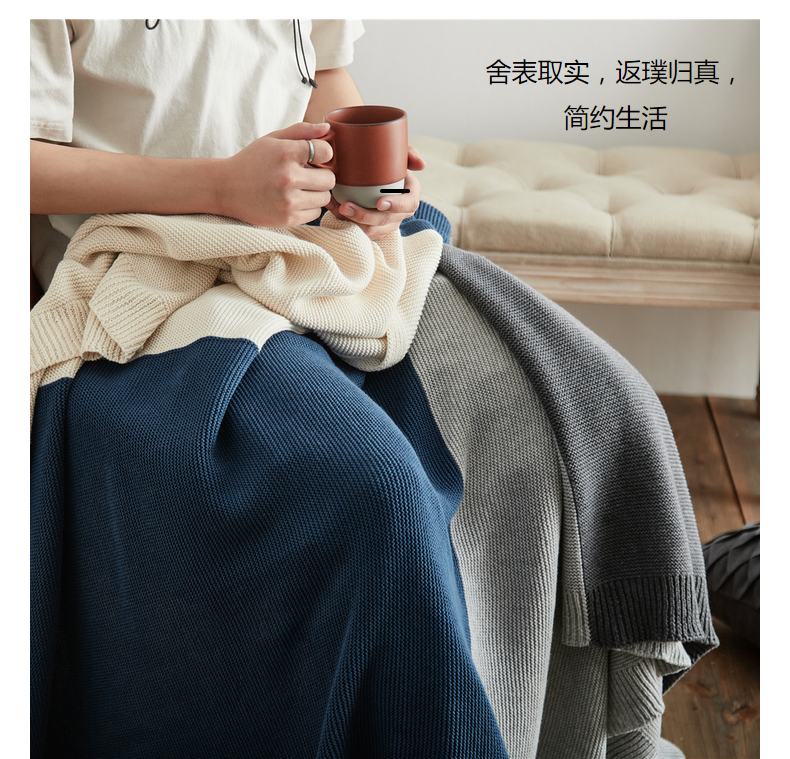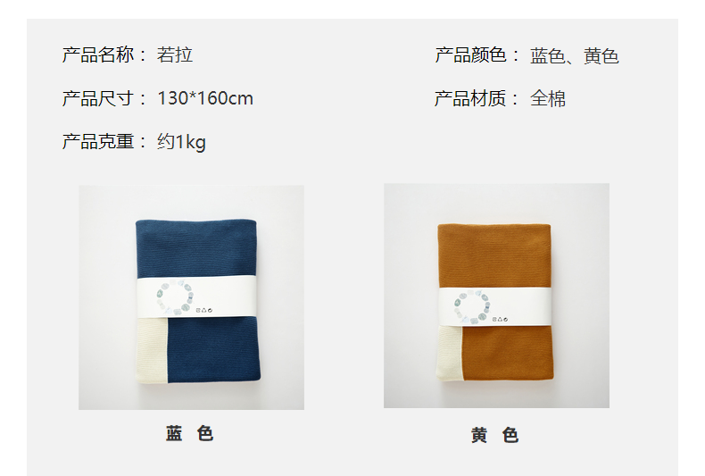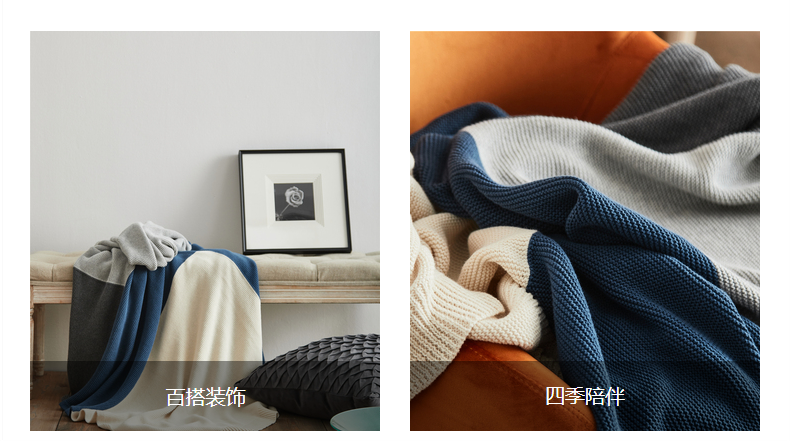 商品名称:暖绵绵若拉系列毛毯针织毯子线毯 拼色蓝