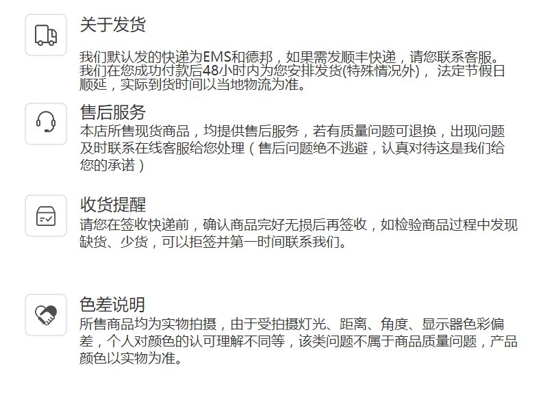 云仓服务3:享急速发货,18点之前下单,2小时内发货,保证发货时效;