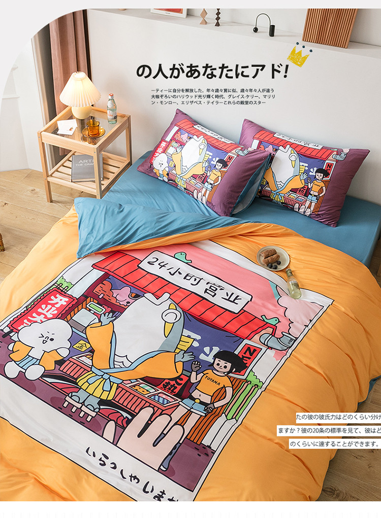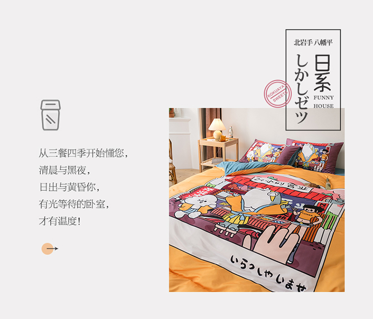 爱缦 2020新款日系针织棉平网四件套 美食杂货铺