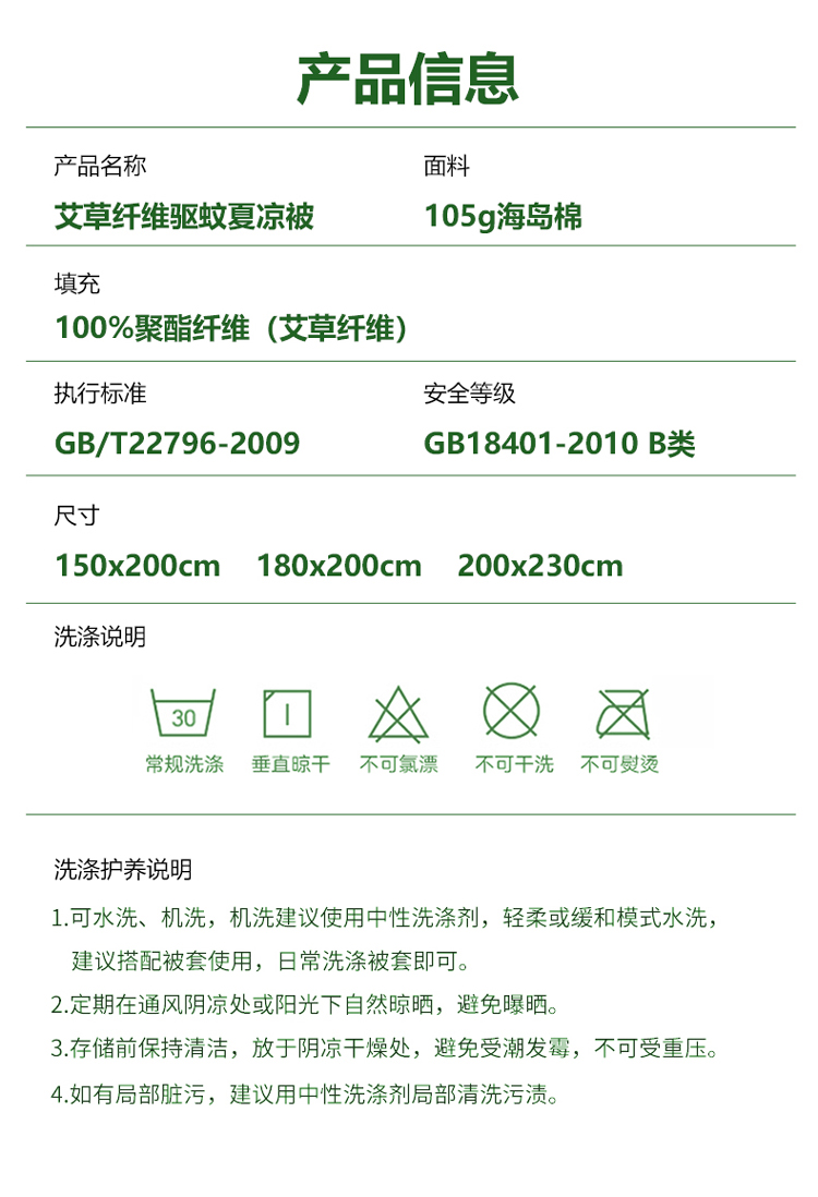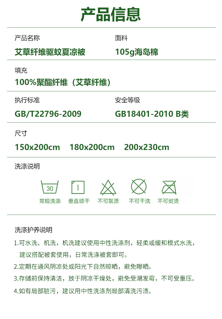 商品名称:(总)(总)欧雅搁 2025新品艾草夏被驱蚊夏凉被抗菌空调夏被